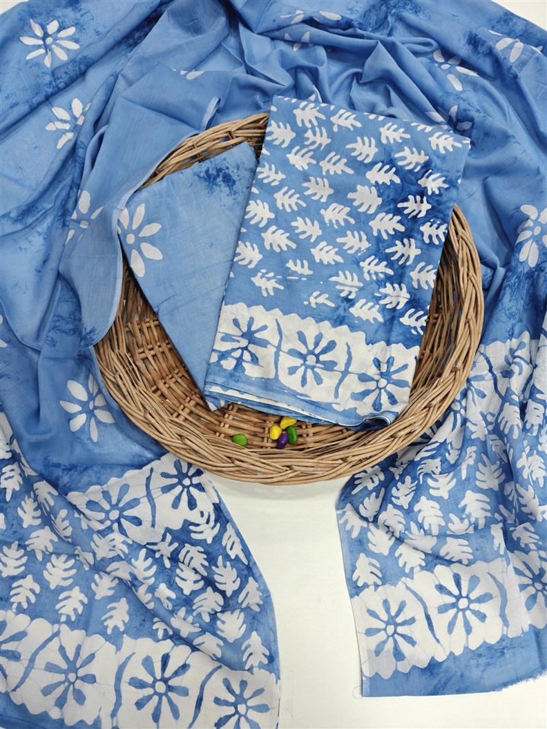 Cotton Suit set with mul cotton Dupatta Fabric details Top 2.5 mtr Dupatta 2.5 mtr Salwar 2.5 mtr