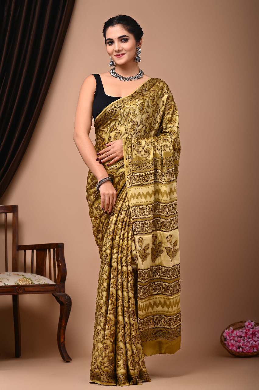 Women''''s mustard yellow modal silk saree