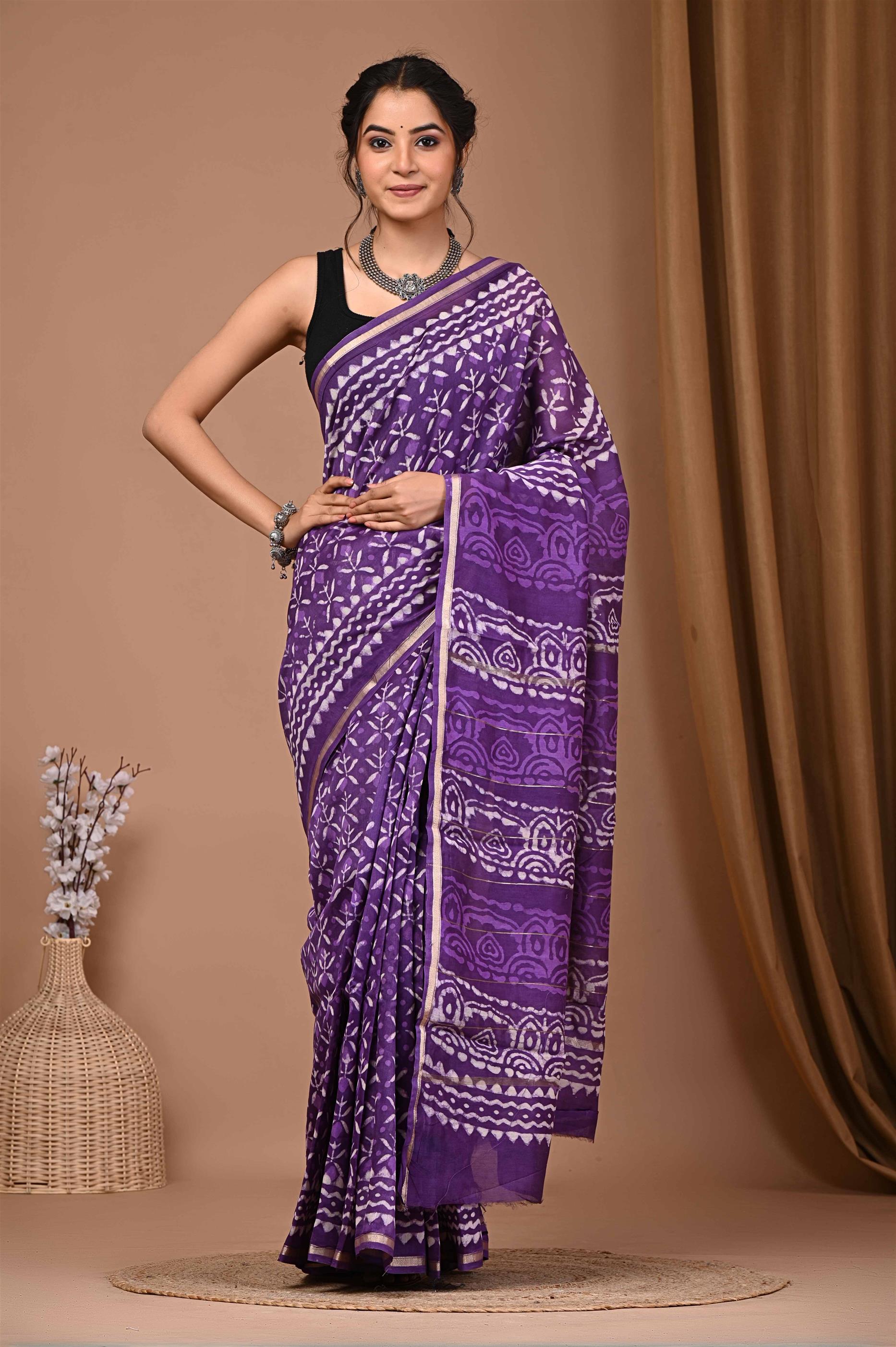 WOMENS PURPLE CHANDERI SILK SAREE