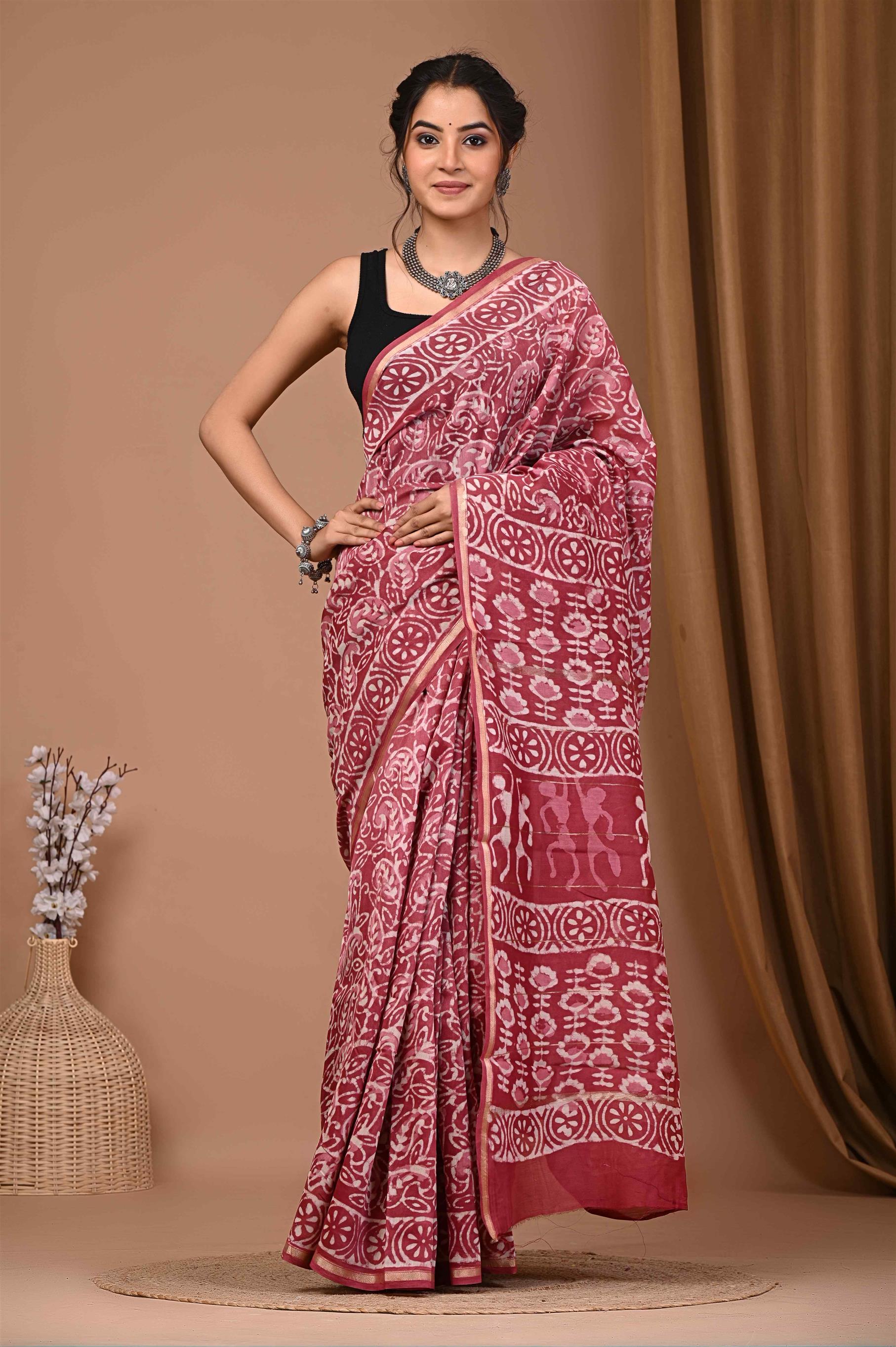 WOMENS MAROON CHANDERI SILK SAREE