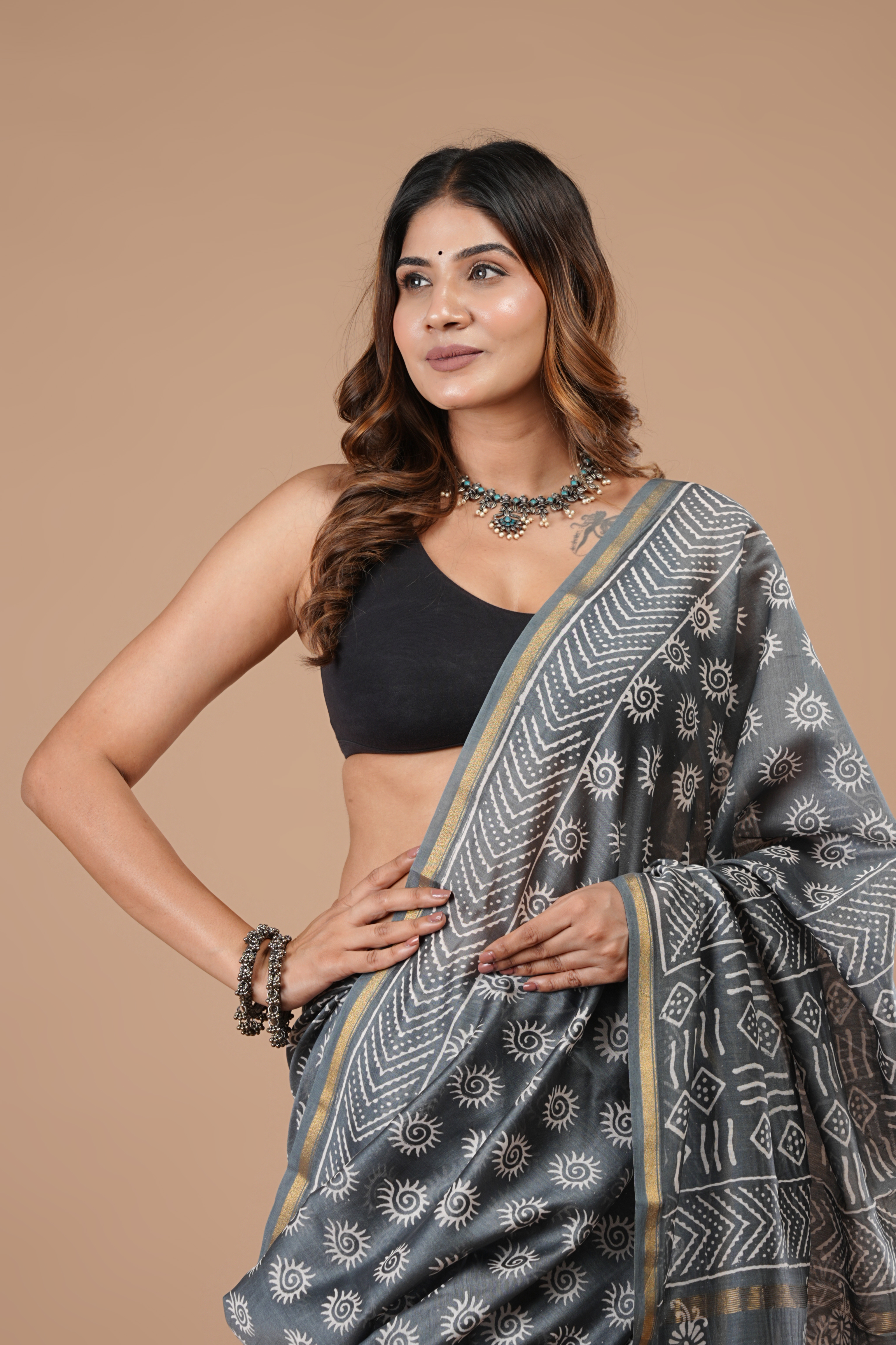Grey Chanderi Silk Saree
