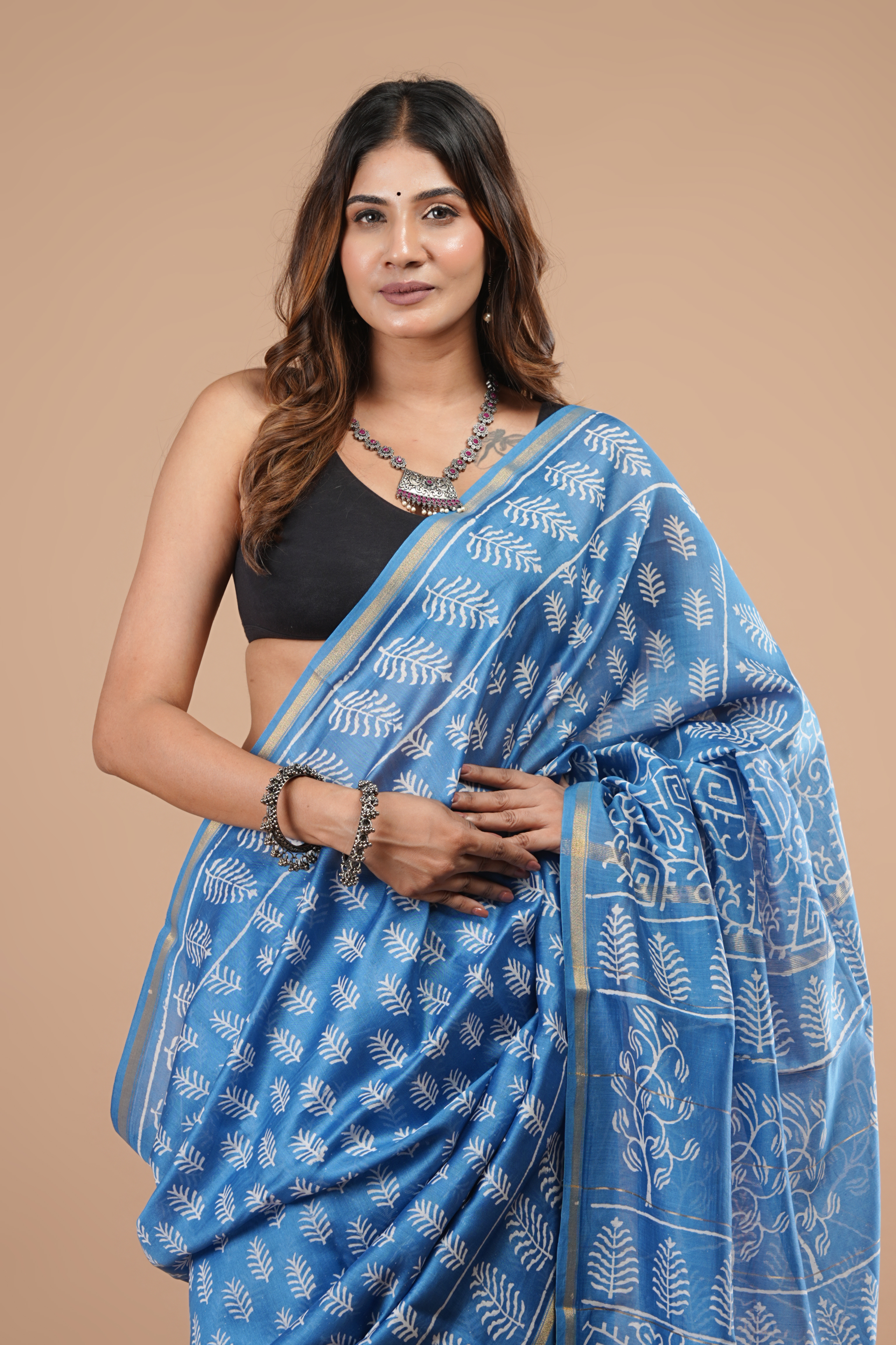 Exclusive Chanderi silk saree with blouse Saree -5.5mtr Blouse -0.80cm Total length -6.30 mtr