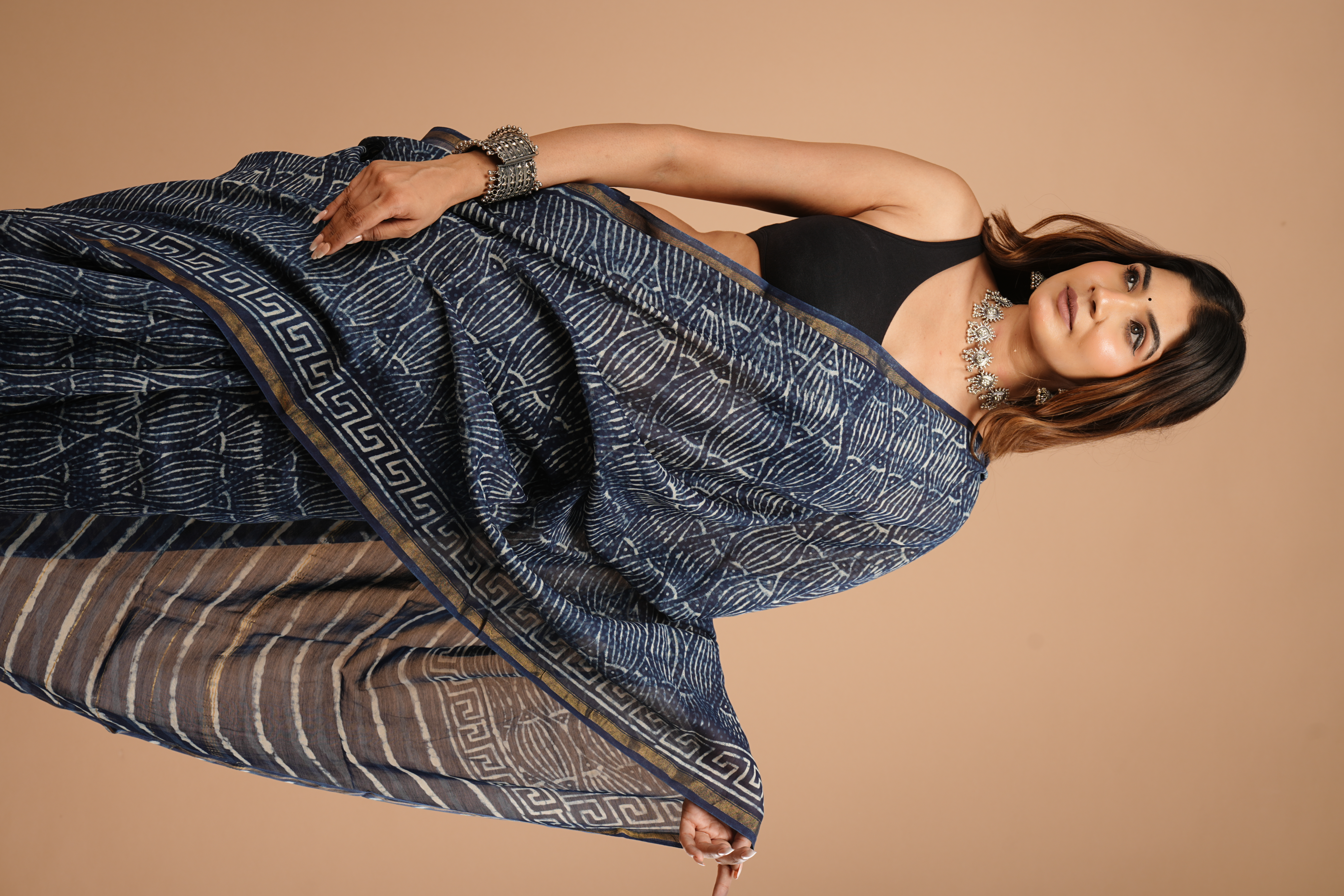 Indigo Chanderi Silk Saree
