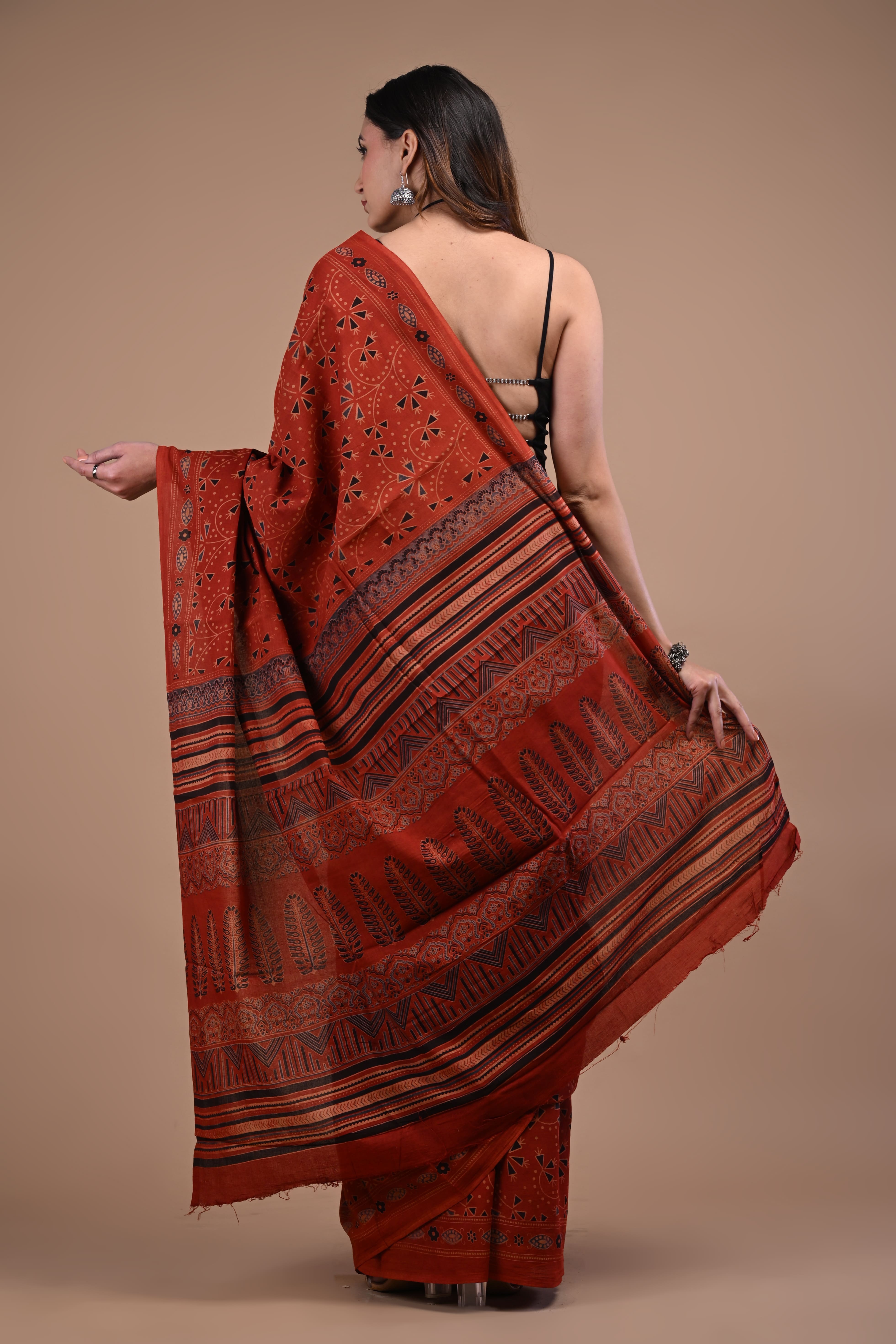 Vanaspati Ajrakh hand block printed cotton Mulmul sarees Size Saree = 5.5 mtr Blouse = 0.80 mtr