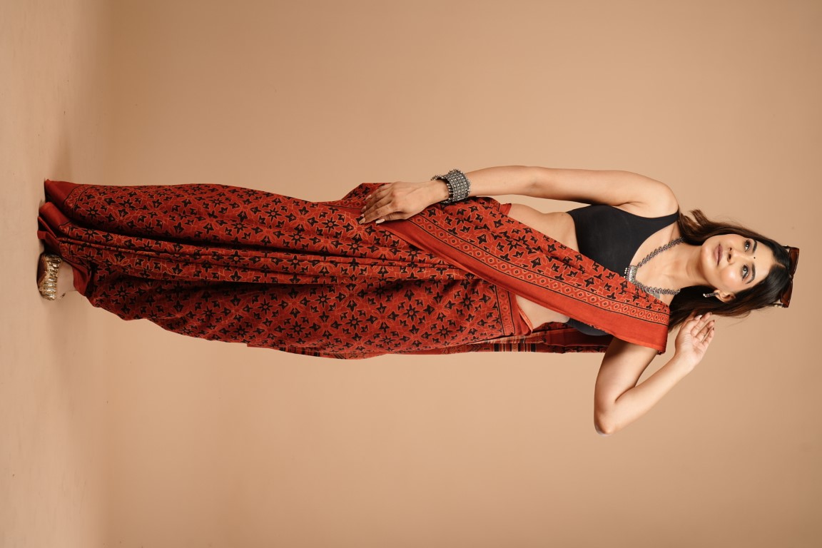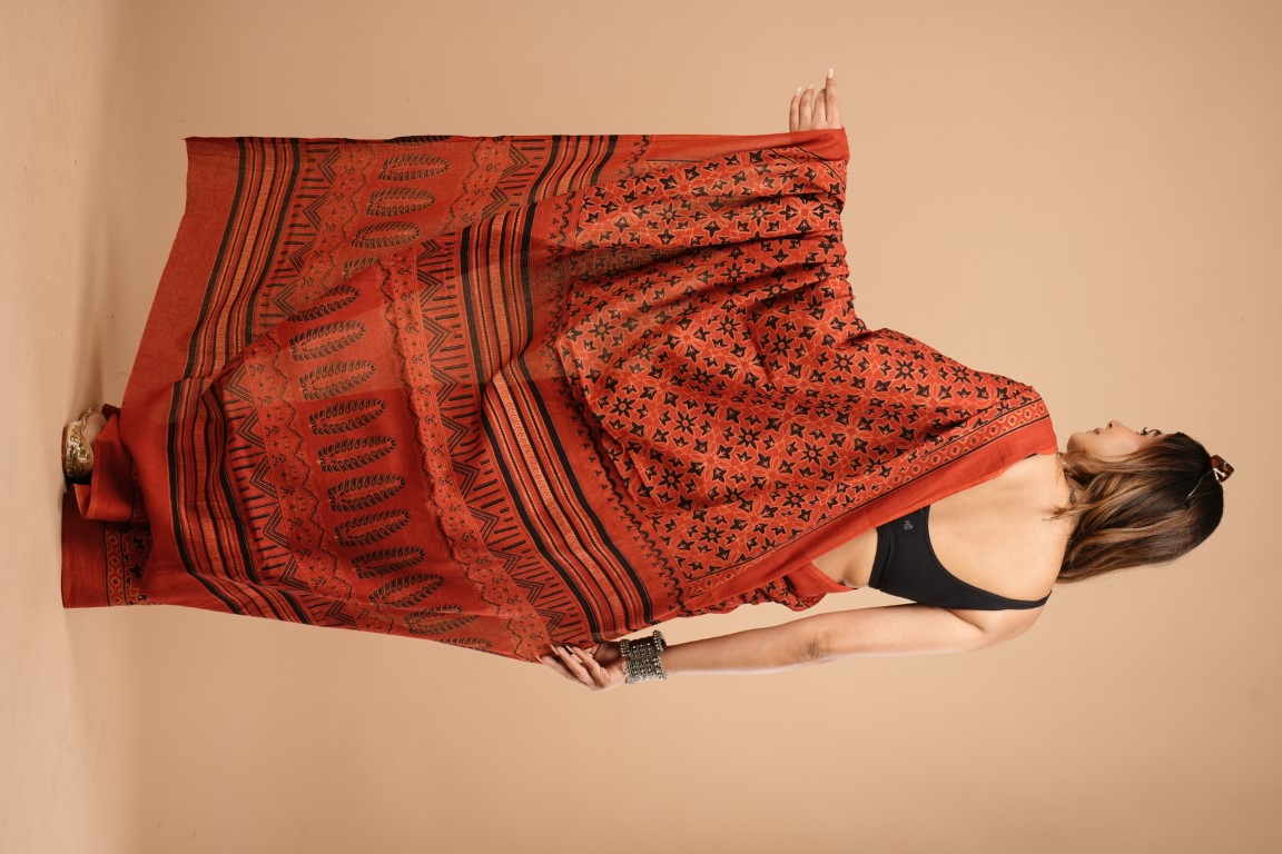 Vanaspati Ajrakh hand block printed cotton Mulmul sarees Size Saree = 5.5 mtr Blouse = 0.80 mtr