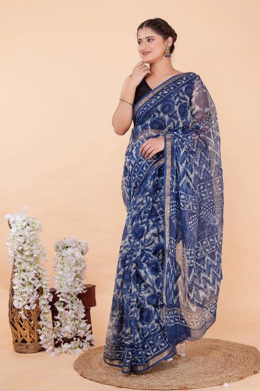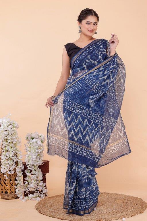 Women''''''''s Indigo Print Kota Doriya Saree