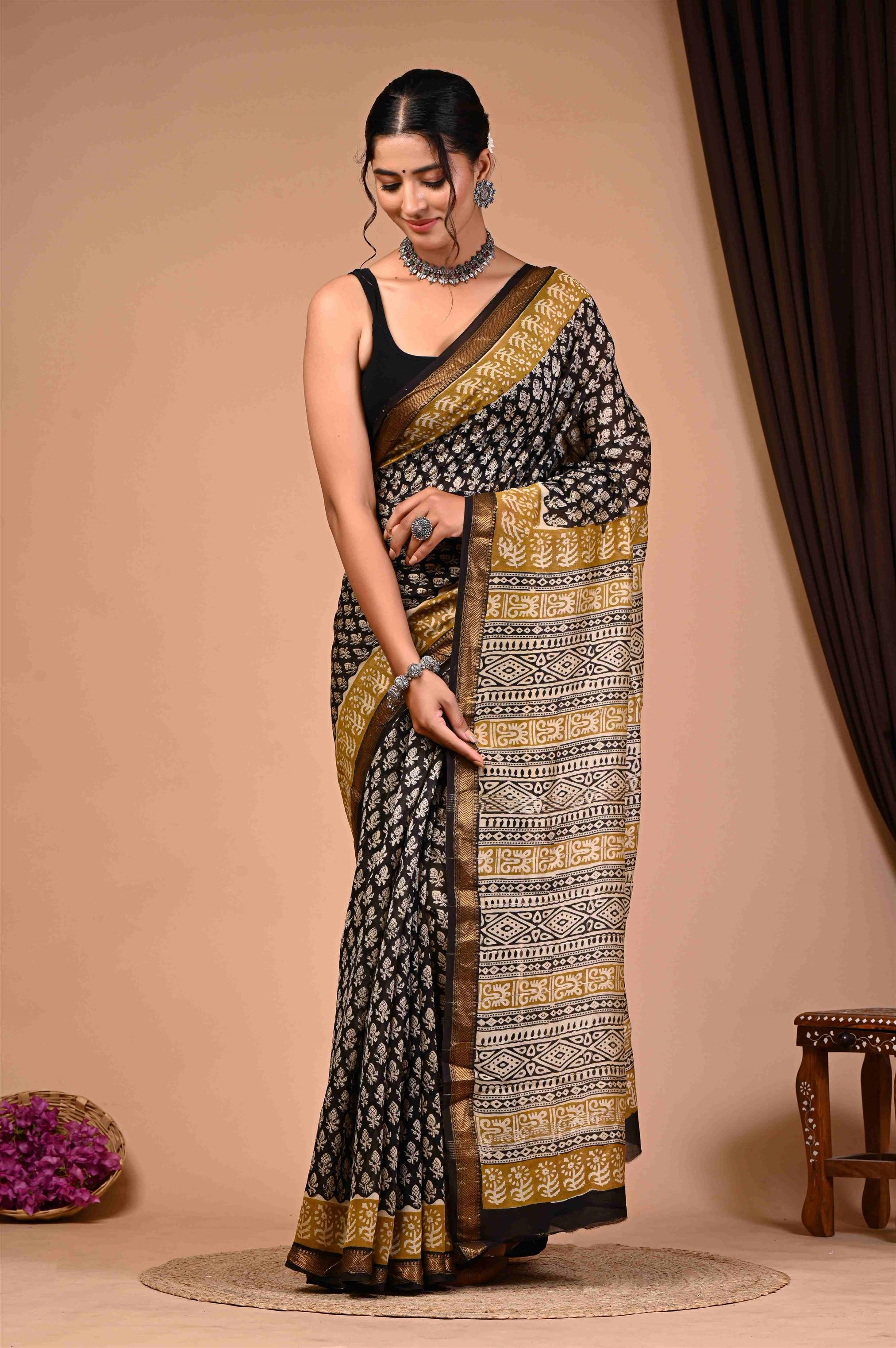 WOMENS PRIMARILY BLACK MAHESHWARI SILK SAREE
