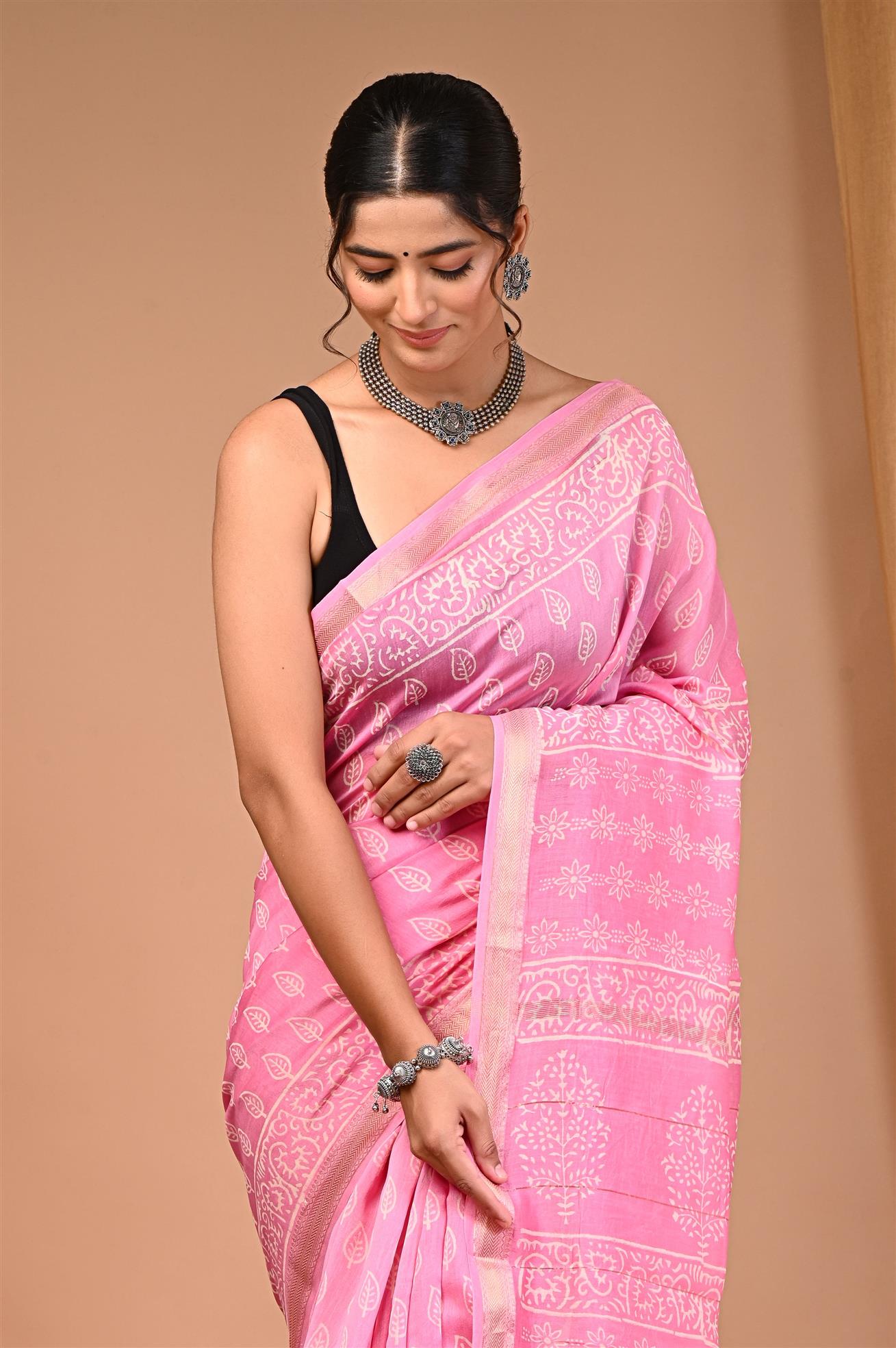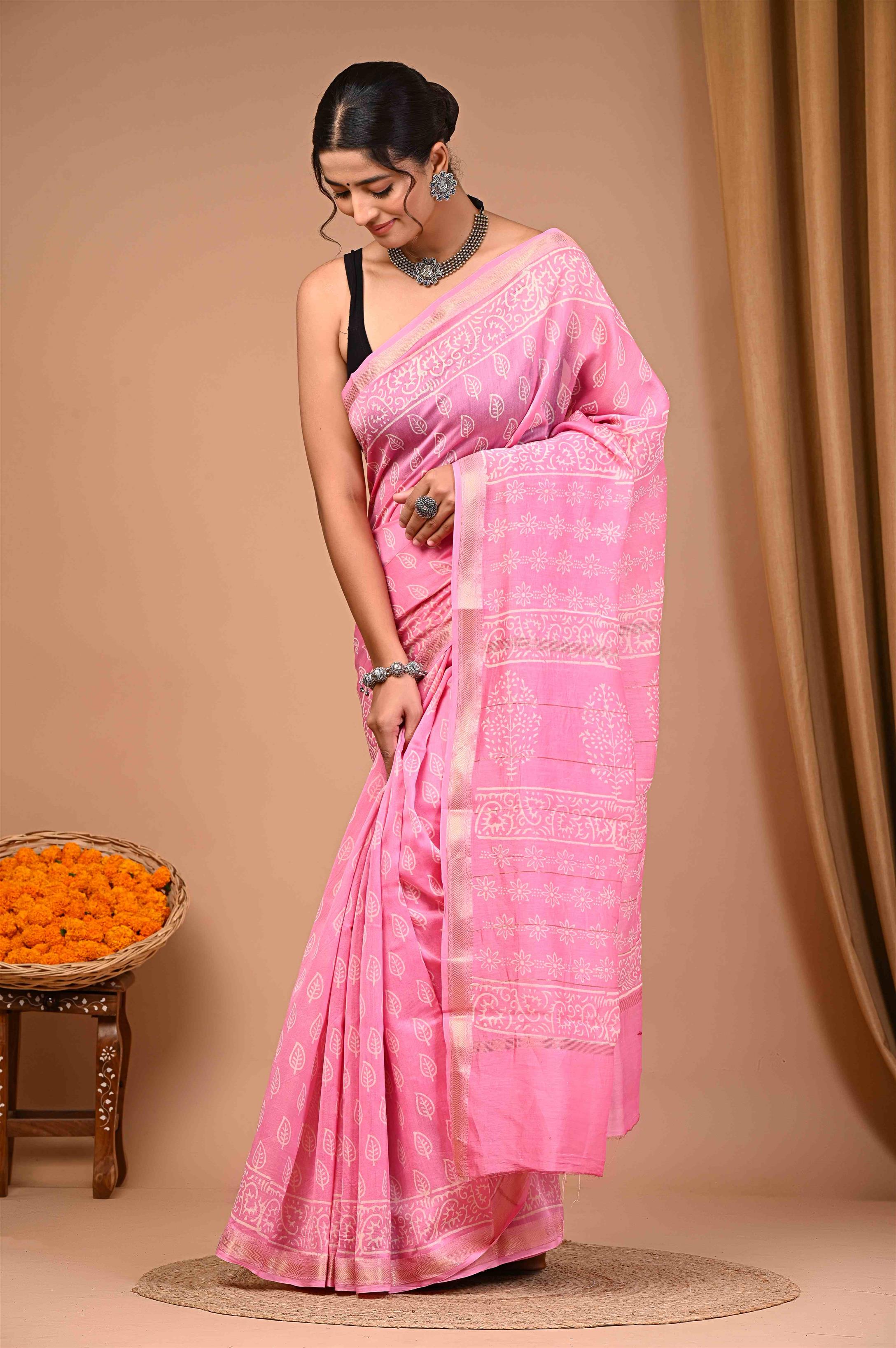 WOMENS PINK MAHESHWARI SILK SAREE