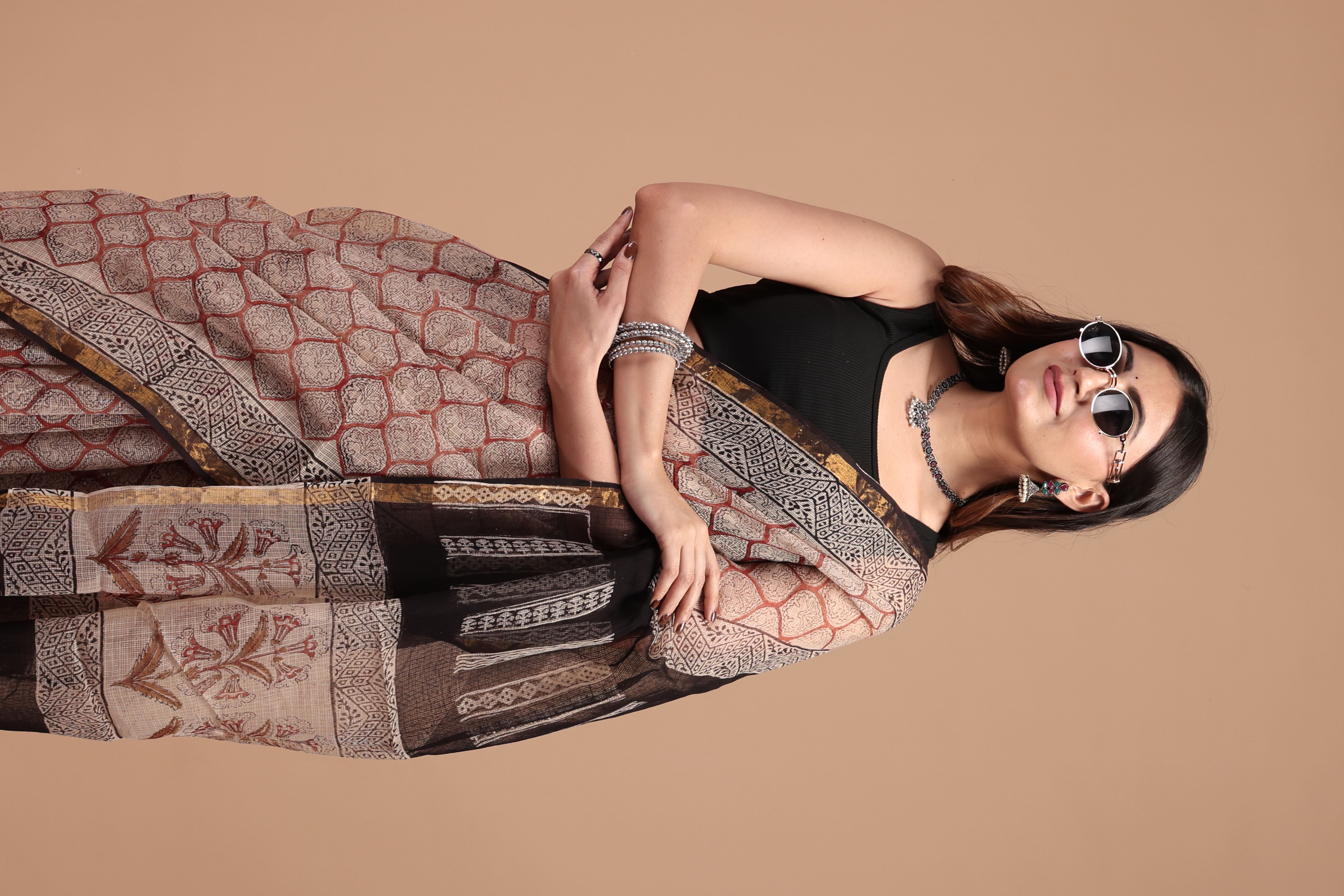 Exlcusives - natural dye vegetable hand block print ajrakh vanaspati PURE MODAL SILK SAREE IMPORTED SILK FABRIC with printed beautiful blouse Size Saree = 5.5 Mtr Blouse = 0.8-1 Mtr