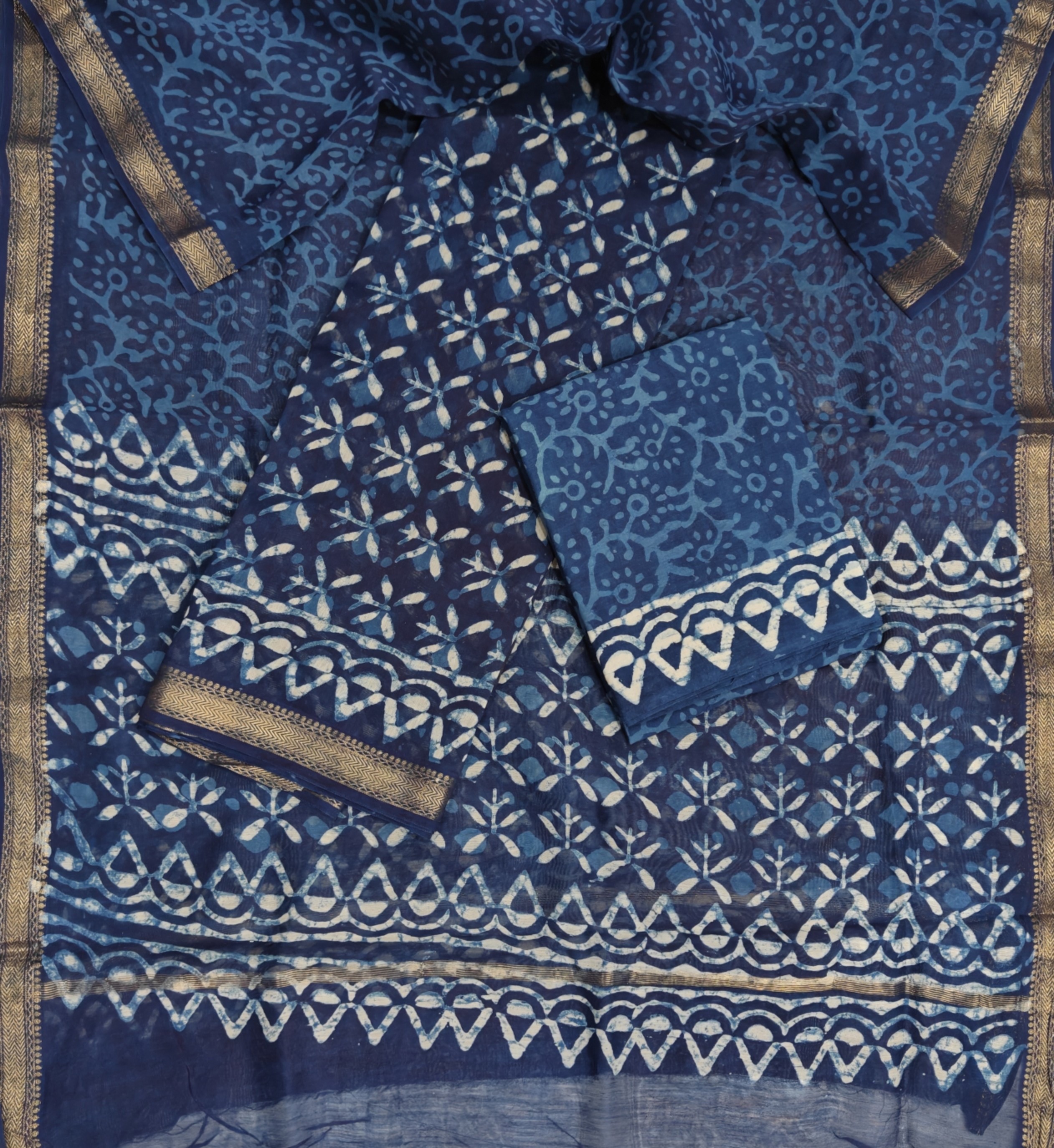 Exclusive maheshwari silk suit set with *Cotton* pajama and pure maheshwari silk dupatta Top-2.5 mtr(maheshwari) Dupatta -2.5 mtr(maheshwari) Salwar -2.5 mtr(Cotton)