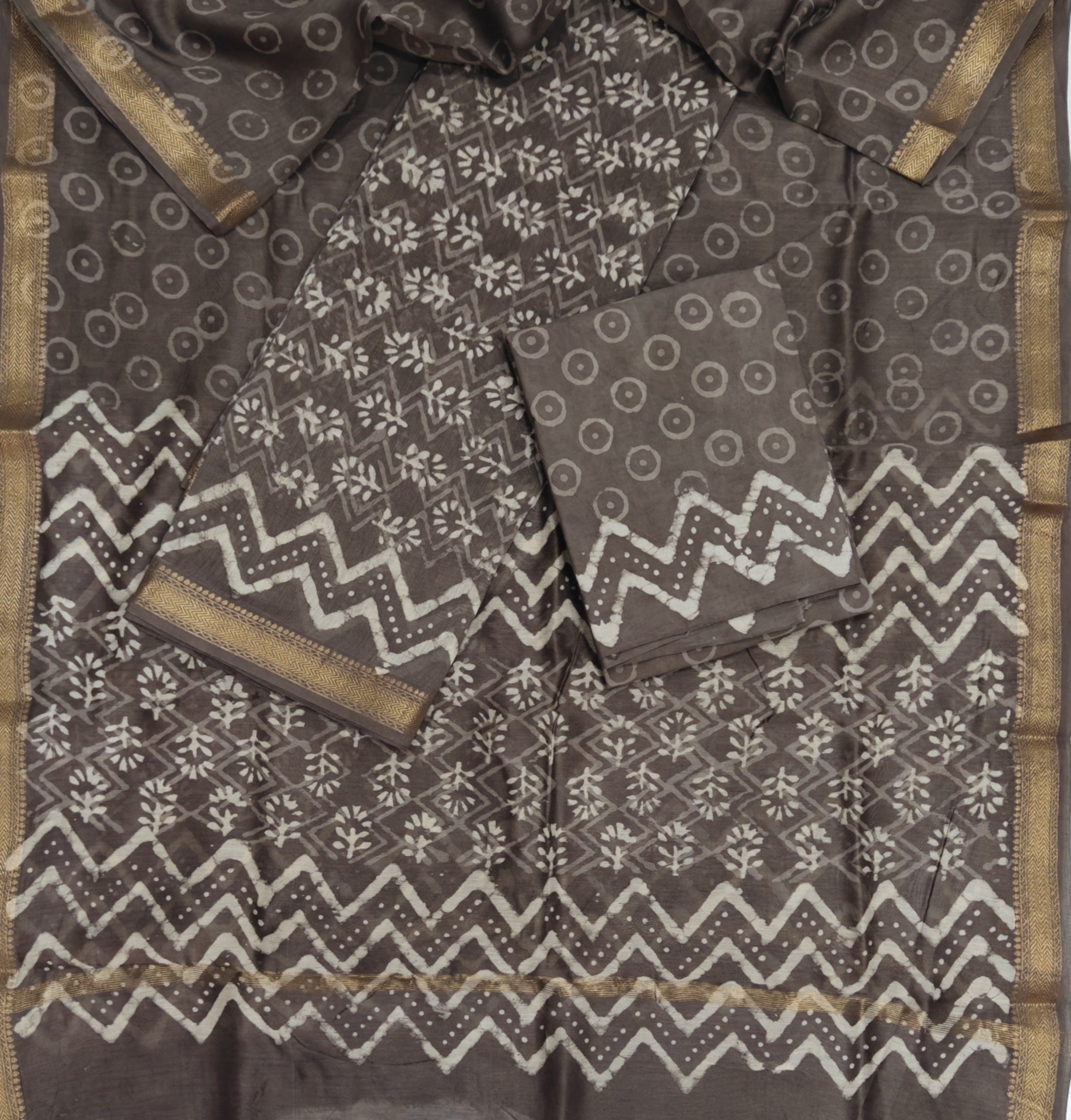 Hand Block Print Maheshwari Silk Suit Set