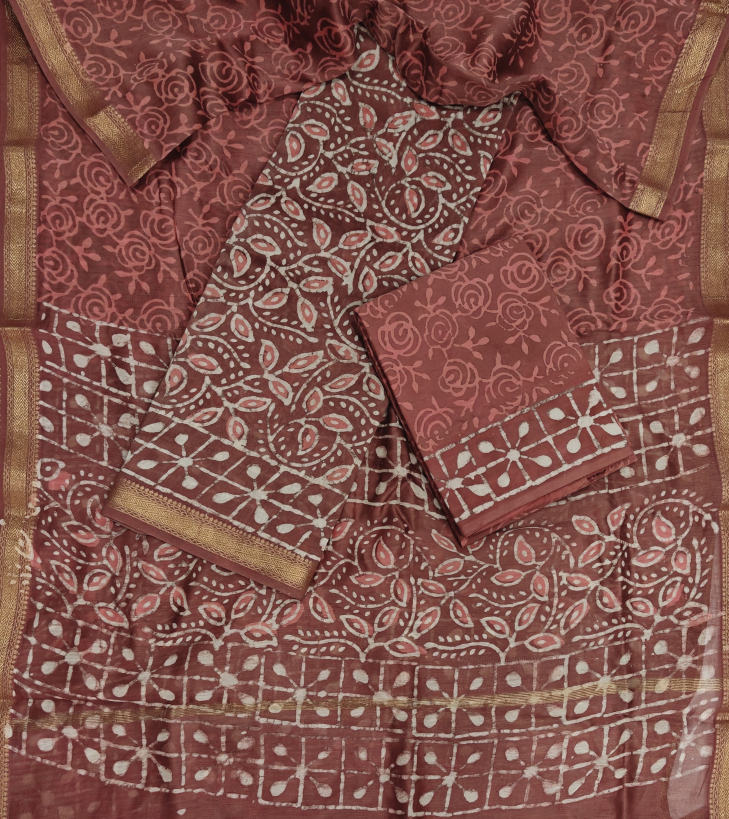 Exclusive maheshwari silk suit set with *Cotton* pajama and pure maheshwari silk dupatta Top-2.5 mtr(maheshwari) Dupatta -2.5 mtr(maheshwari) Salwar -2.5 mtr(Cotton)