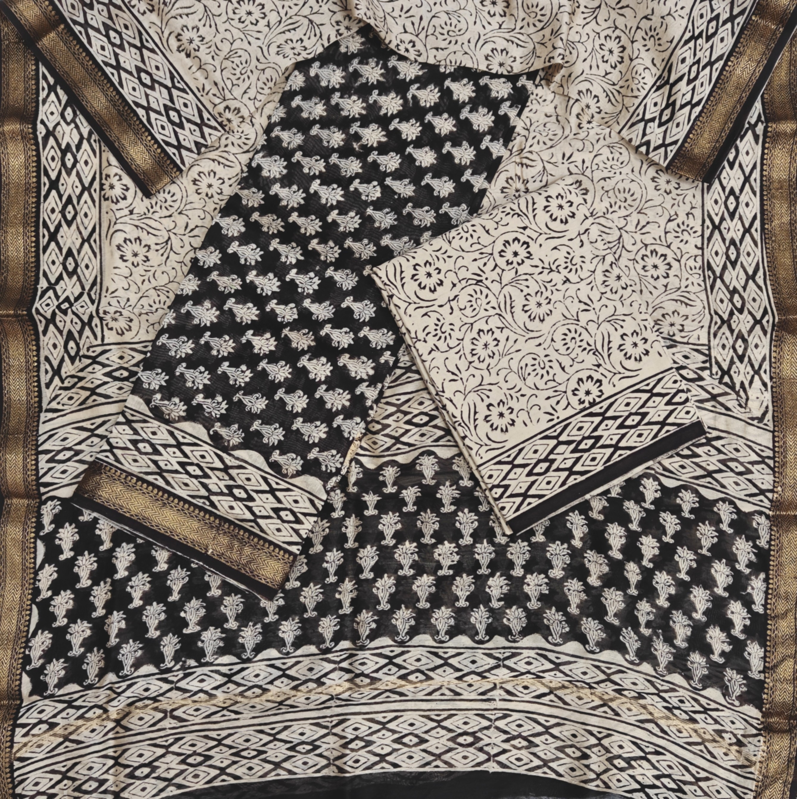 Bagru Print Maheshwari Silk Suit Set