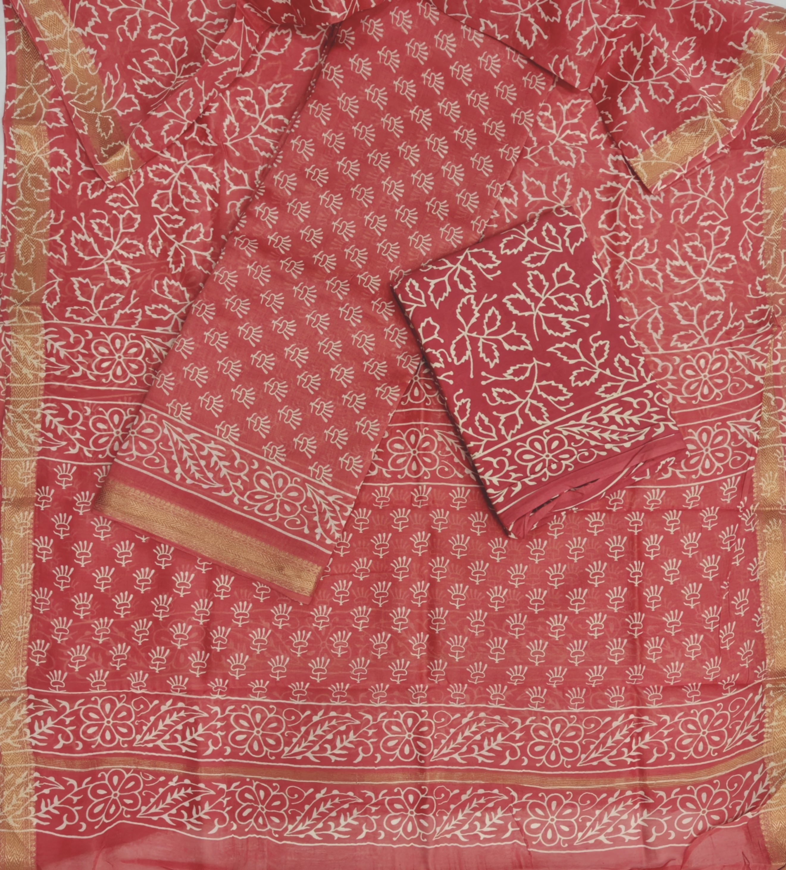 Exclusive maheshwari silk suit set with *Cotton* pajama and pure maheshwari silk dupatta Top-2.5 mtr(maheshwari) Dupatta -2.5 mtr(maheshwari) Salwar -2.5 mtr(Cotton)