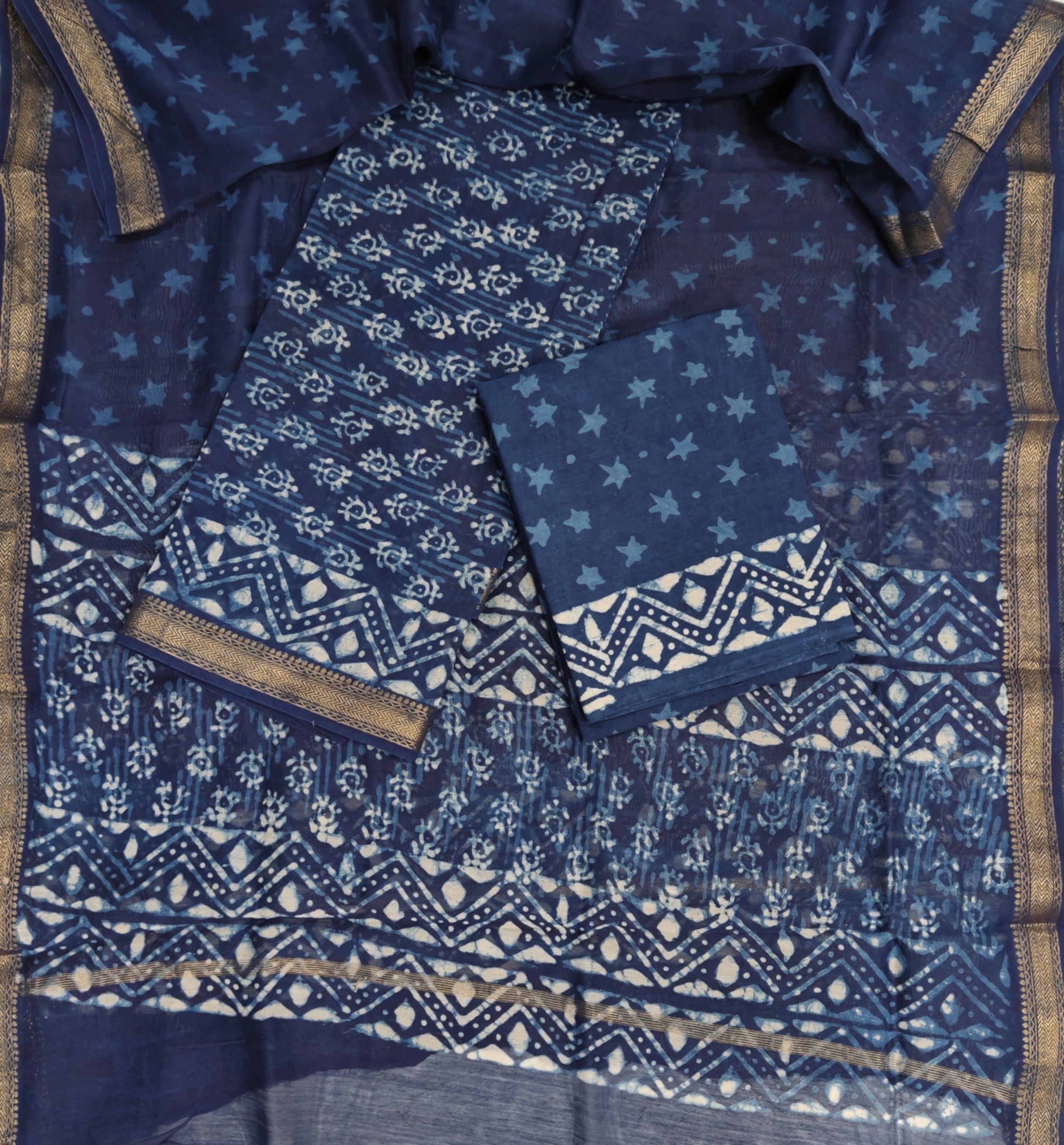 Exclusive maheshwari silk suit set with *Cotton* pajama and pure maheshwari silk dupatta Top-2.5 mtr(maheshwari) Dupatta -2.5 mtr(maheshwari) Salwar -2.5 mtr(Cotton)