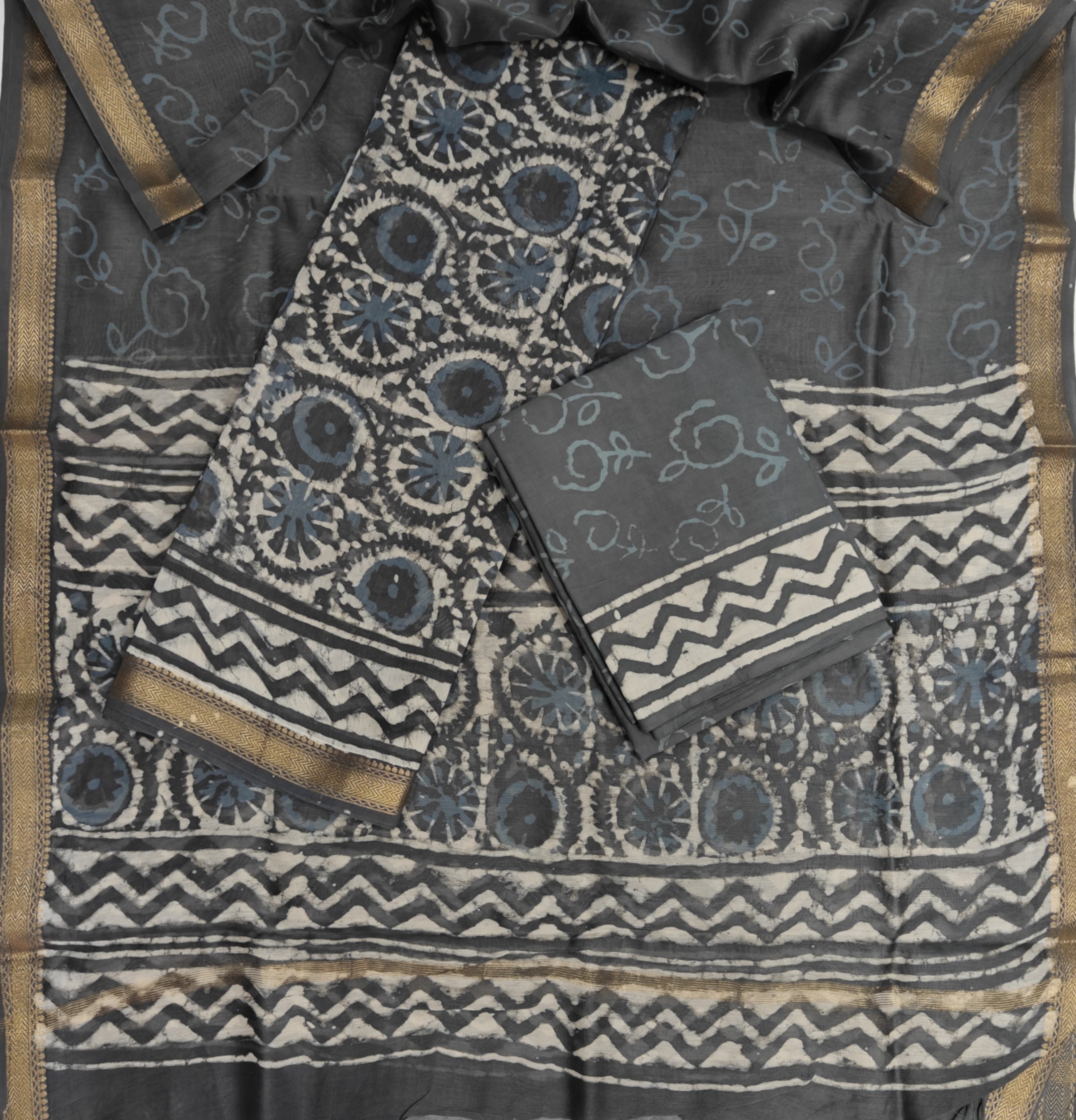 Exclusive maheshwari silk suit set with *Cotton* pajama and pure maheshwari silk dupatta Top-2.5 mtr(maheshwari) Dupatta -2.5 mtr(maheshwari) Salwar -2.5 mtr(Cotton)