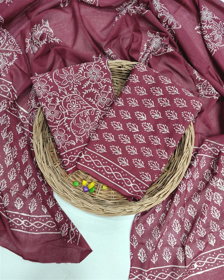 Cotton Suit set with mul cotton Dupatta Fabric details Top 2.5 mtr Dupatta 2.5 mtr Salwar 2.5 mtr