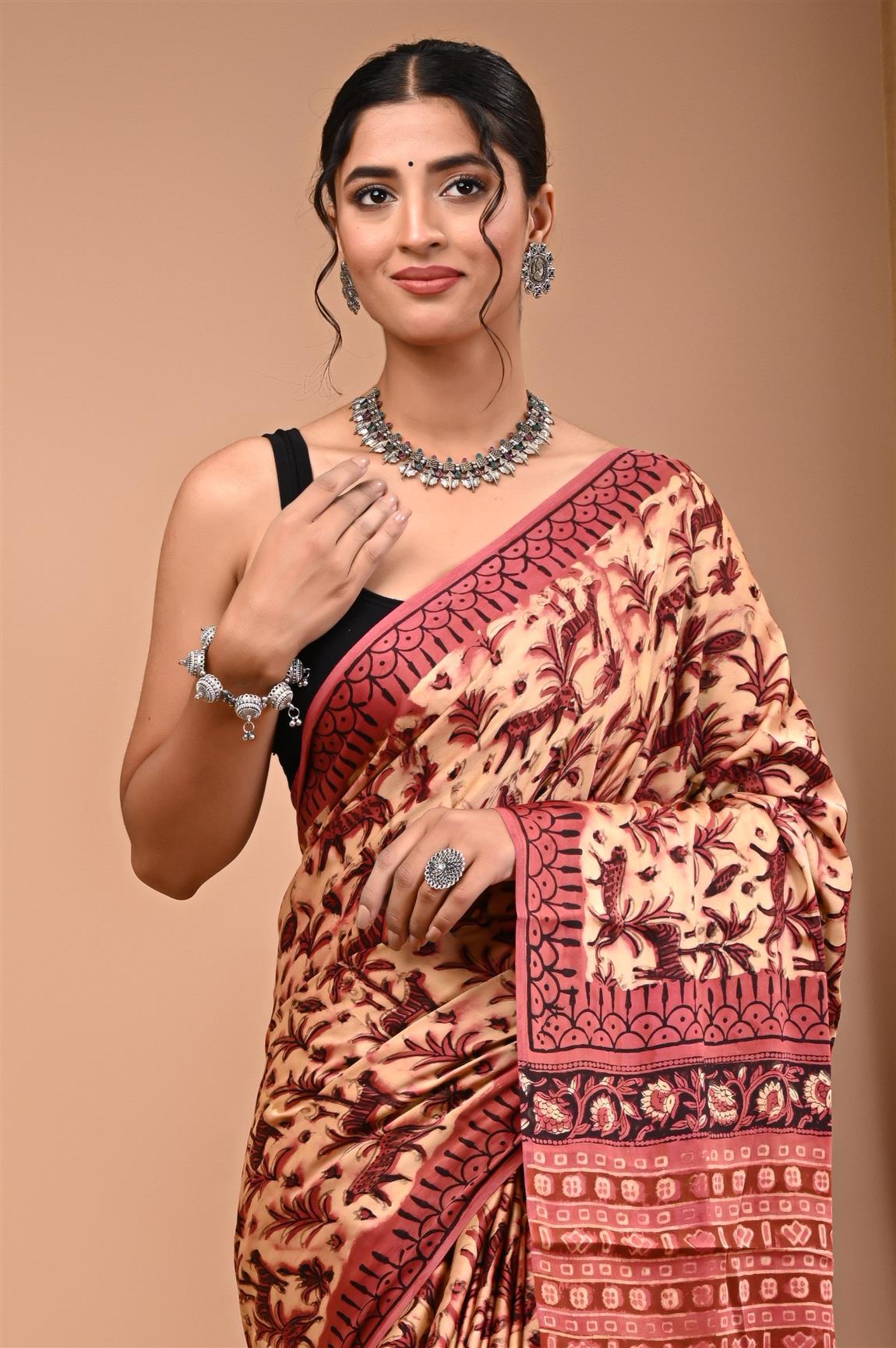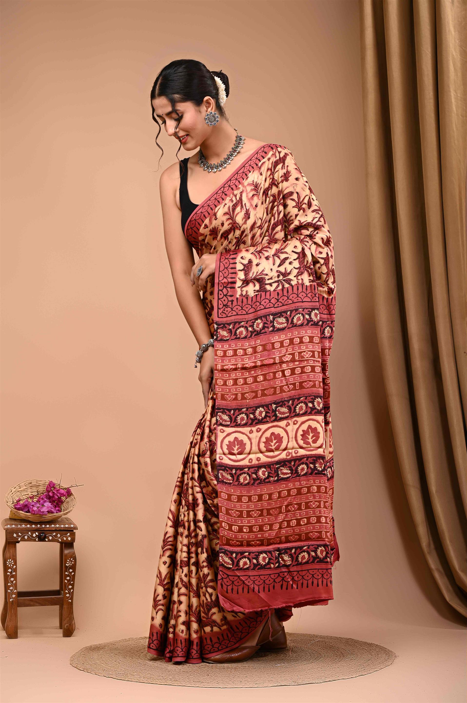 WOMENS BEROWN AND CREAM MODAL SILK SAREE