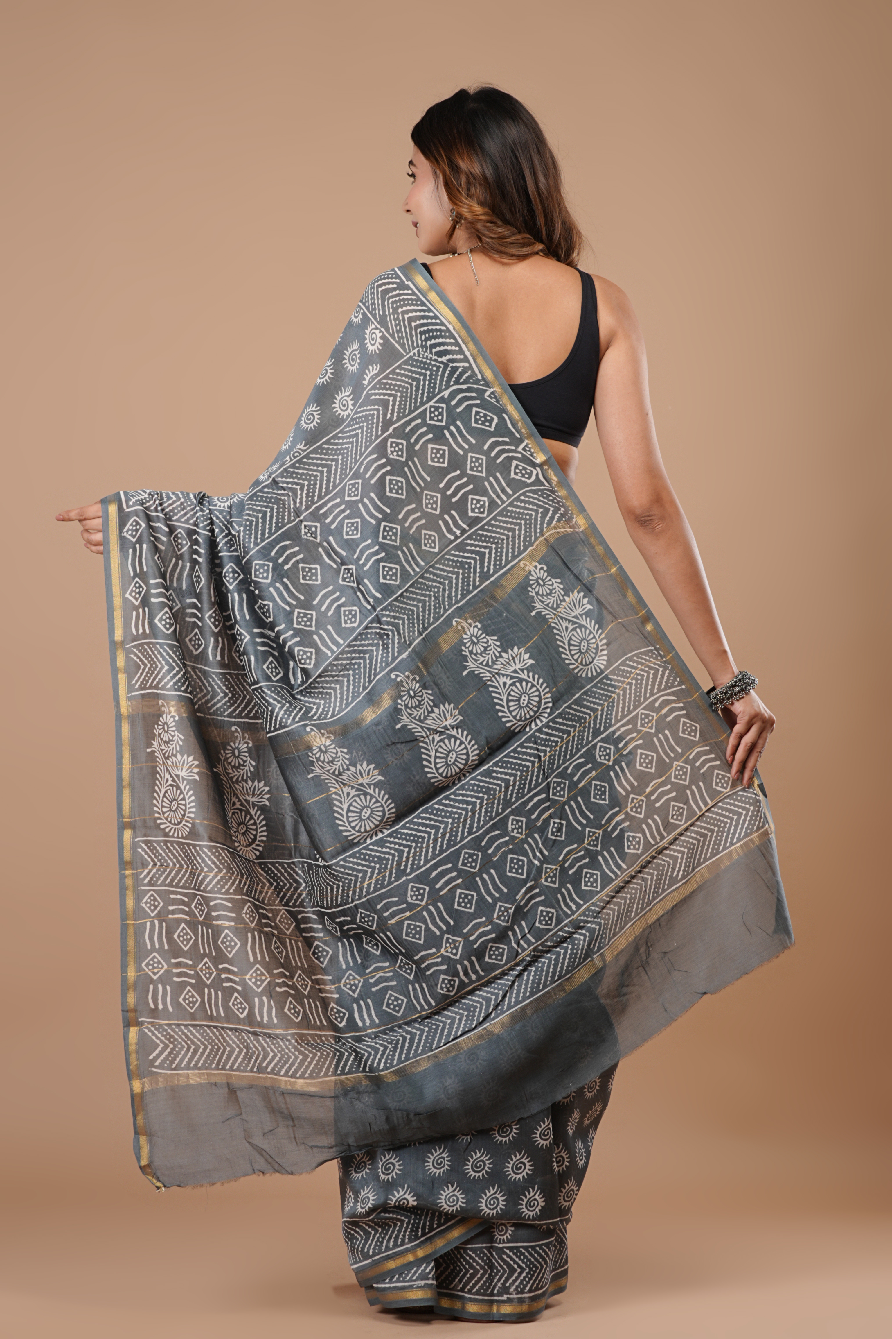 Grey Chanderi Silk Saree