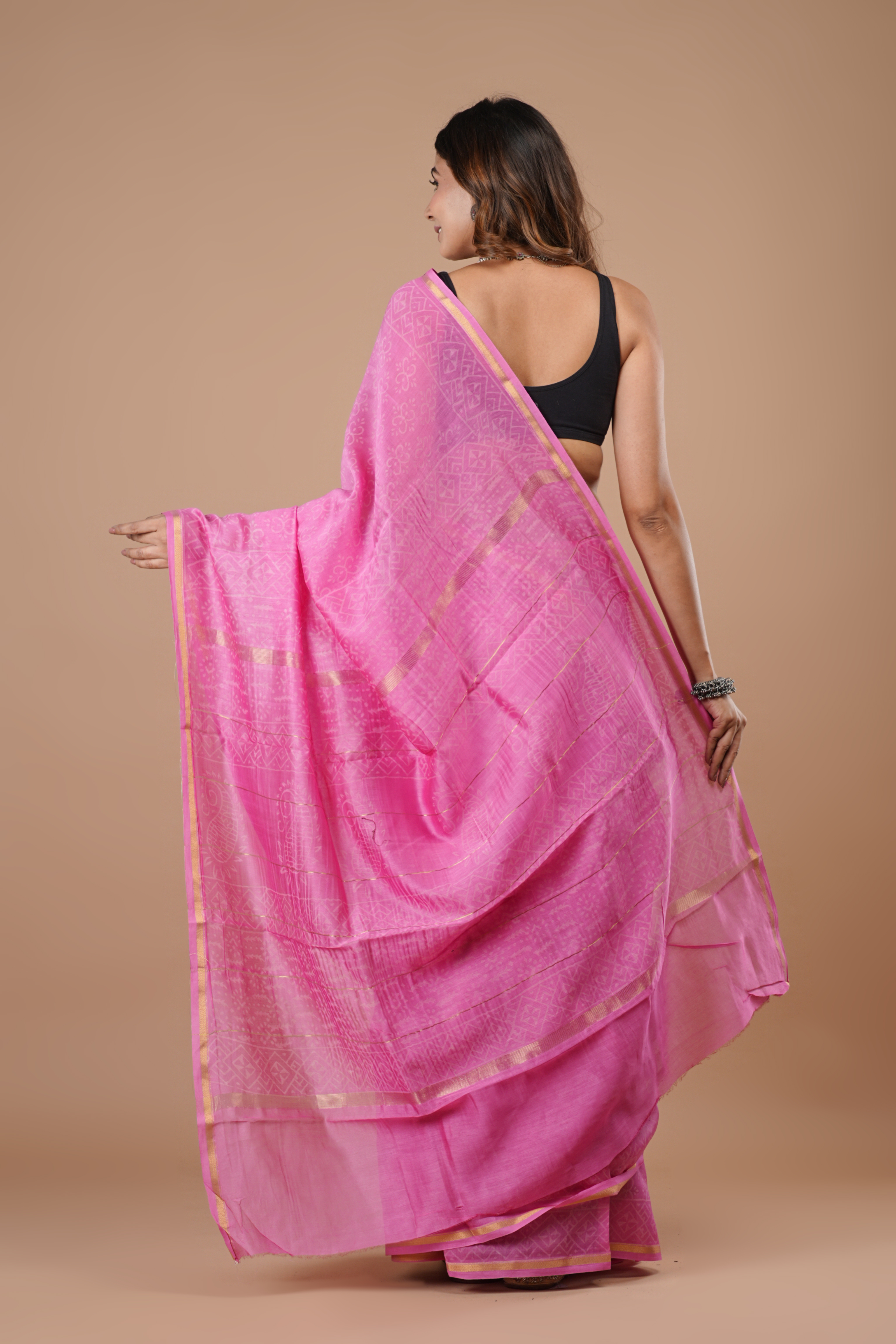 Exclusive Chanderi silk saree with blouse Saree -5.5mtr Blouse -0.80cm Total length -6.30 mtr