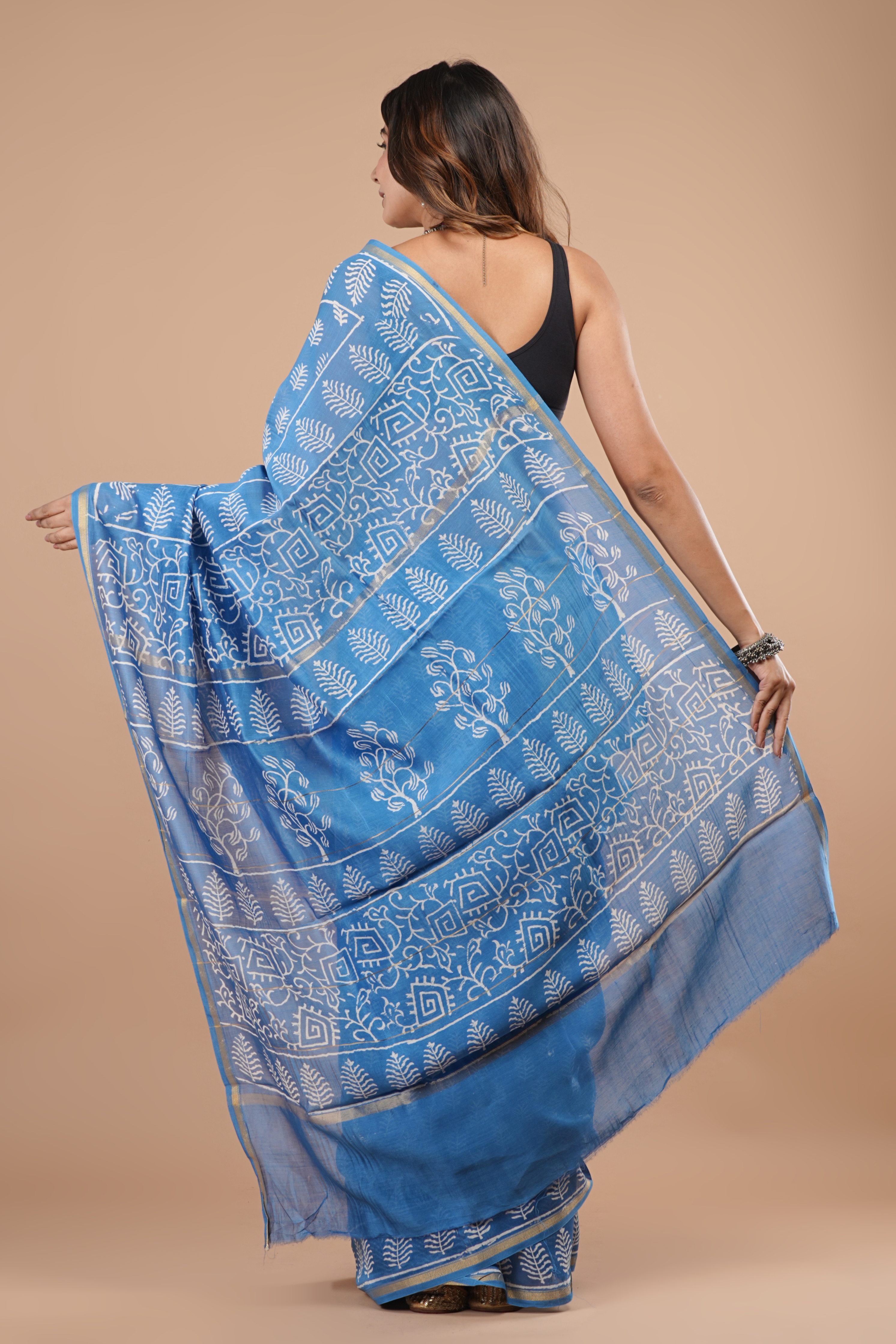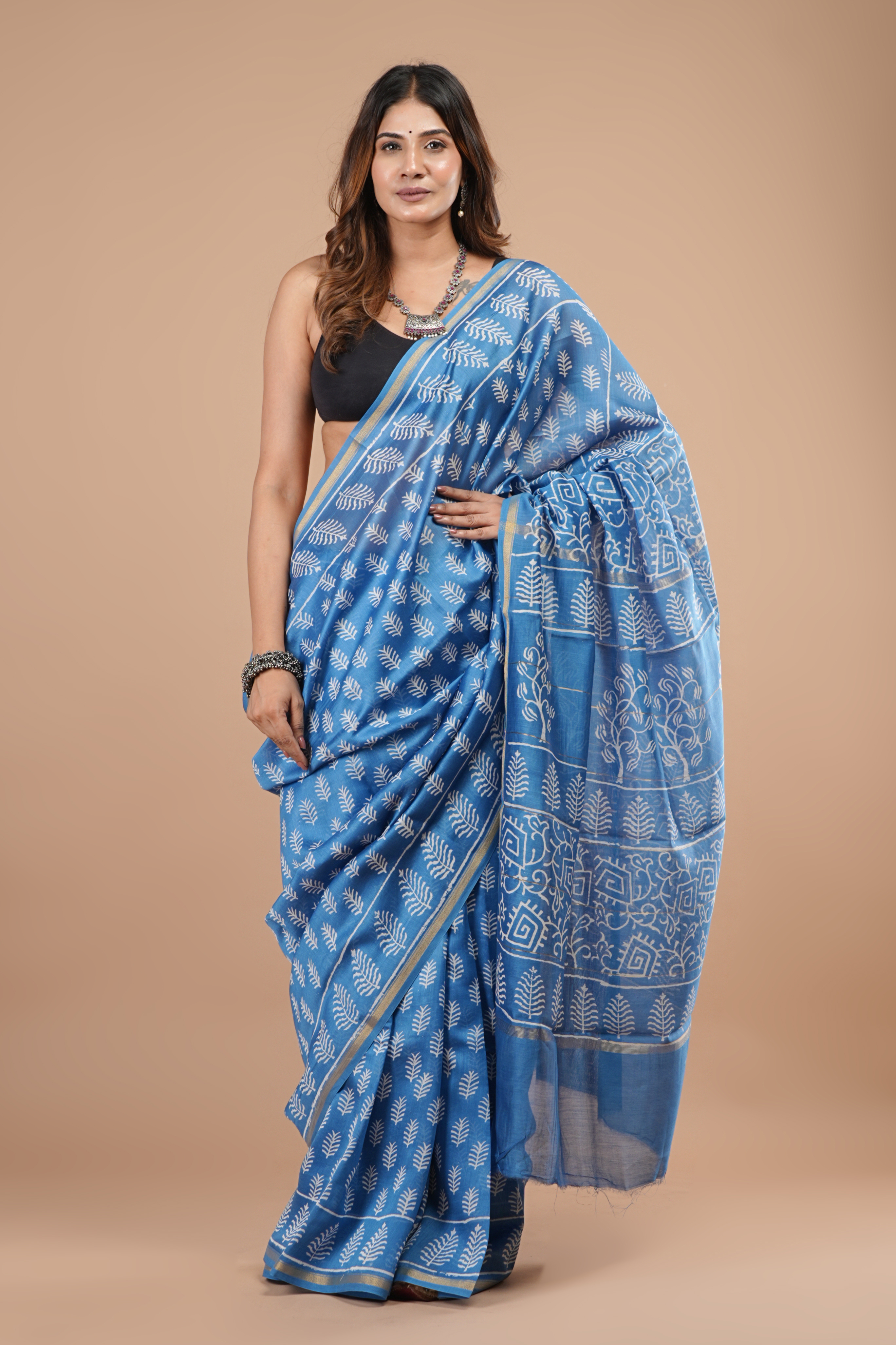 Exclusive Chanderi silk saree with blouse Saree -5.5mtr Blouse -0.80cm Total length -6.30 mtr