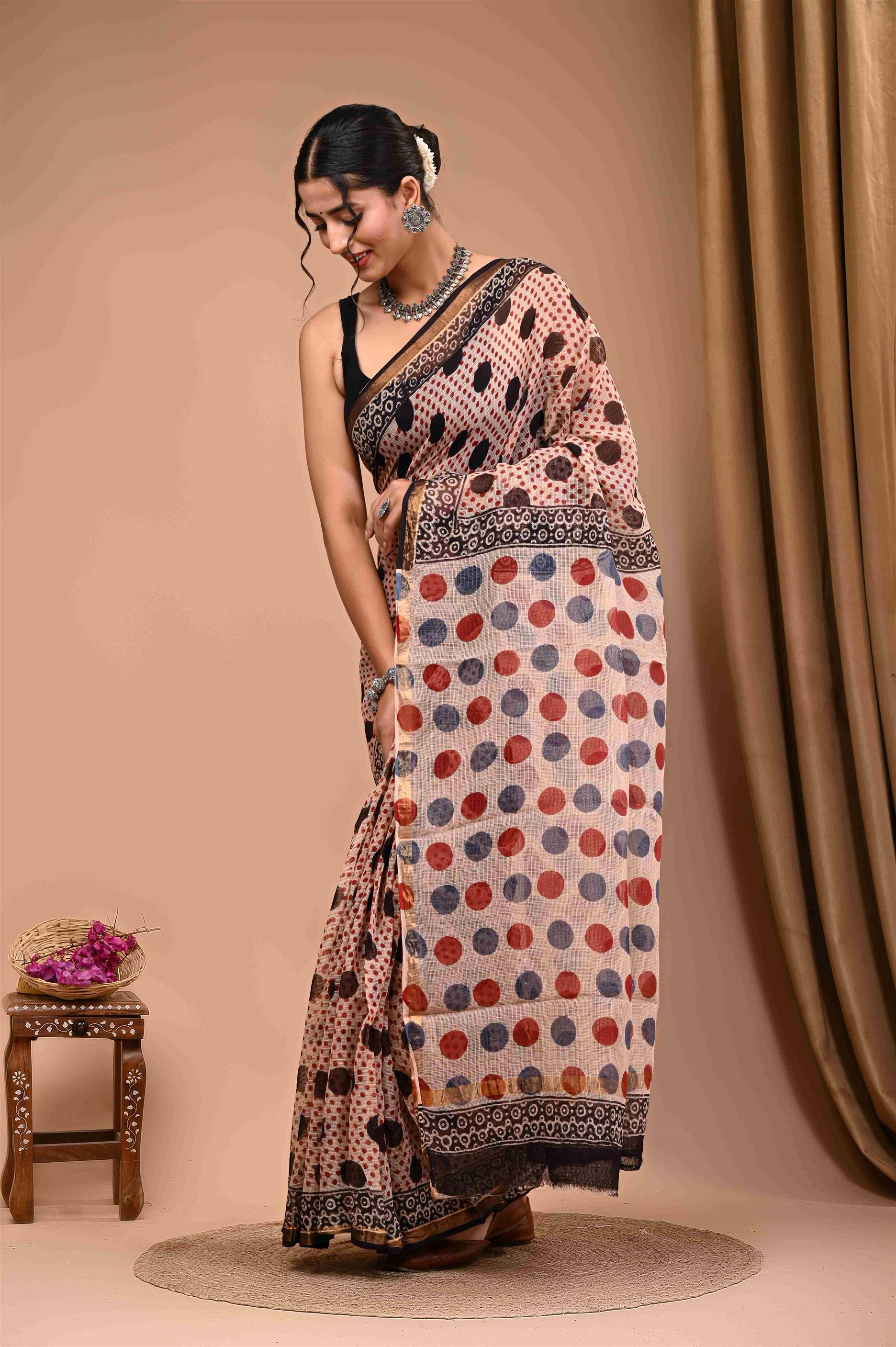 WOMENS BROWN KOTA DORIYA SAREE