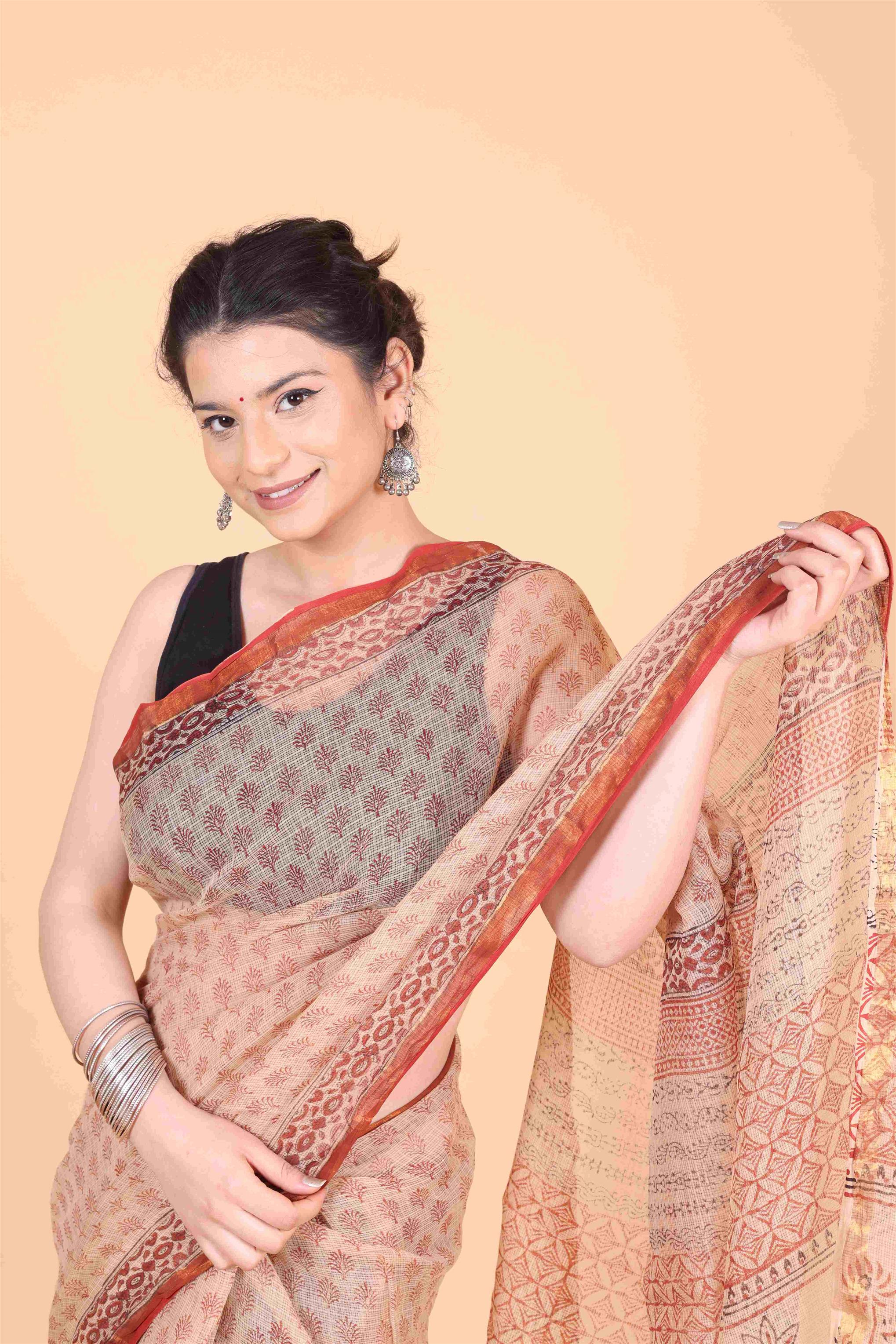 WOMENS LIGHT ORANGE KOTA DORIYA SAREE