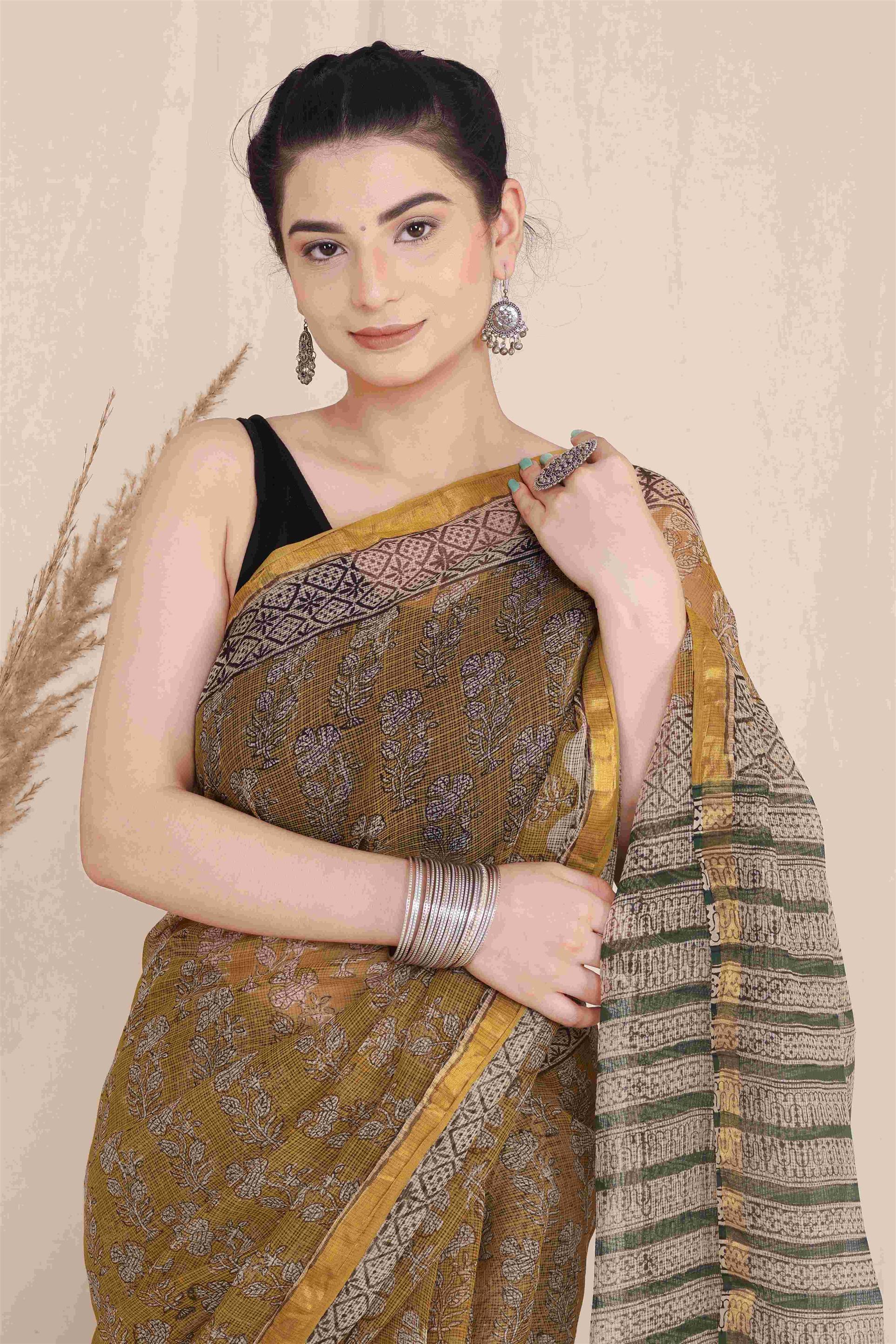WOMENS MUSTERD YELLOW KOTA DORIYA SAREE