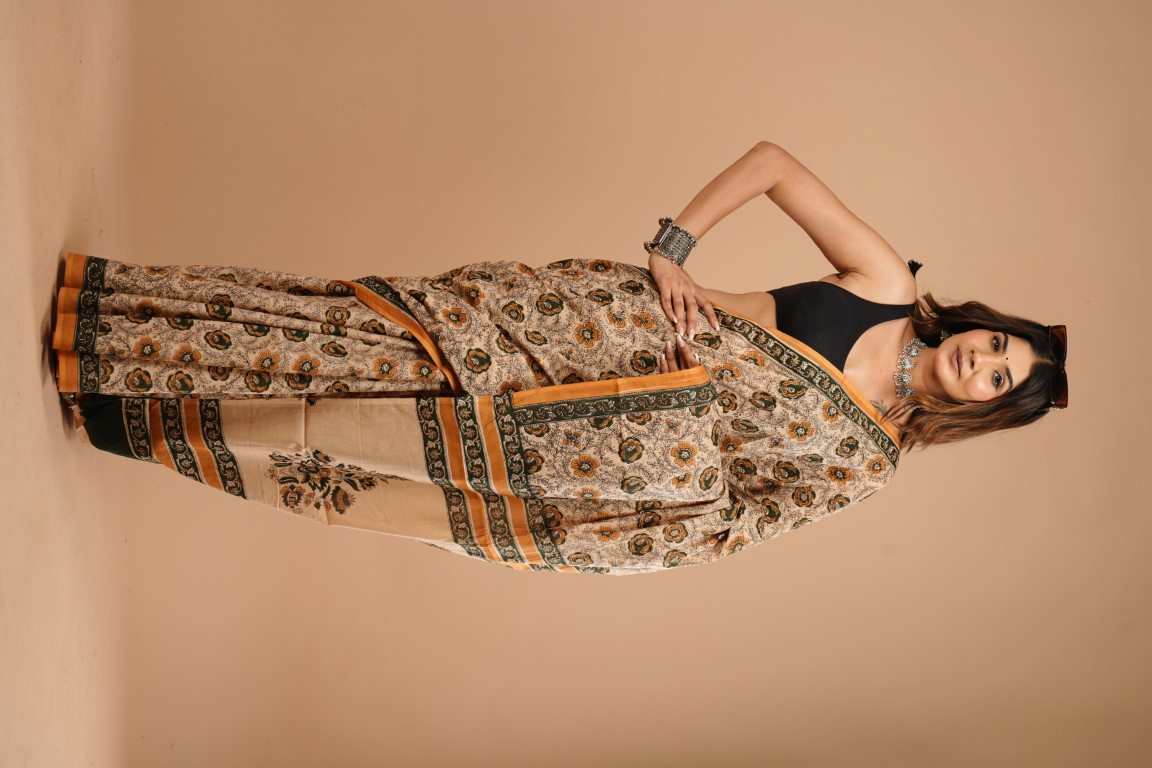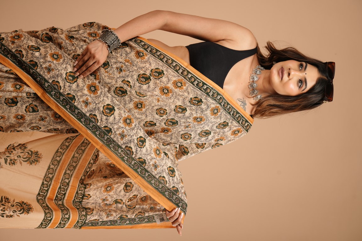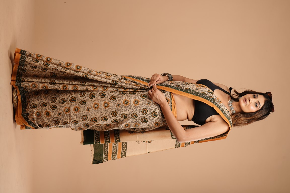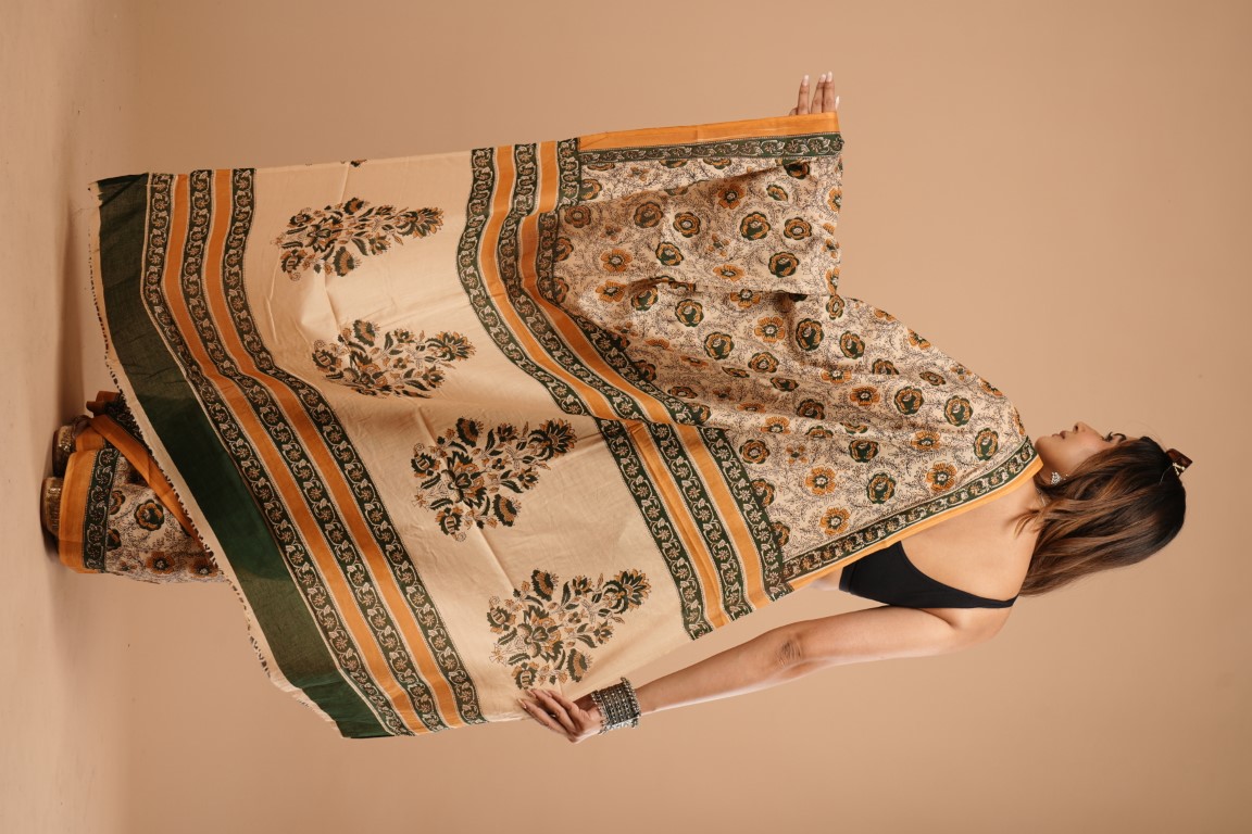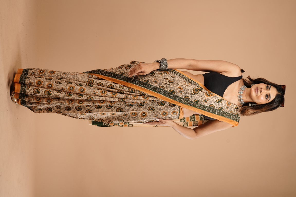 WOMENS BROWN COTTON SAREE