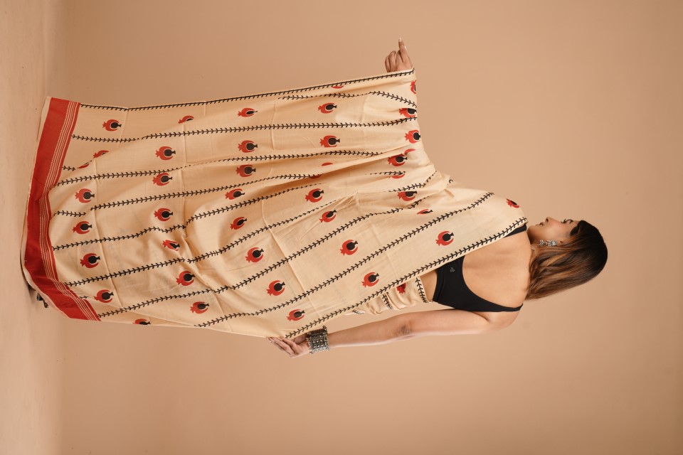 WOMENS CREAM COLOURED COTTON SAREE