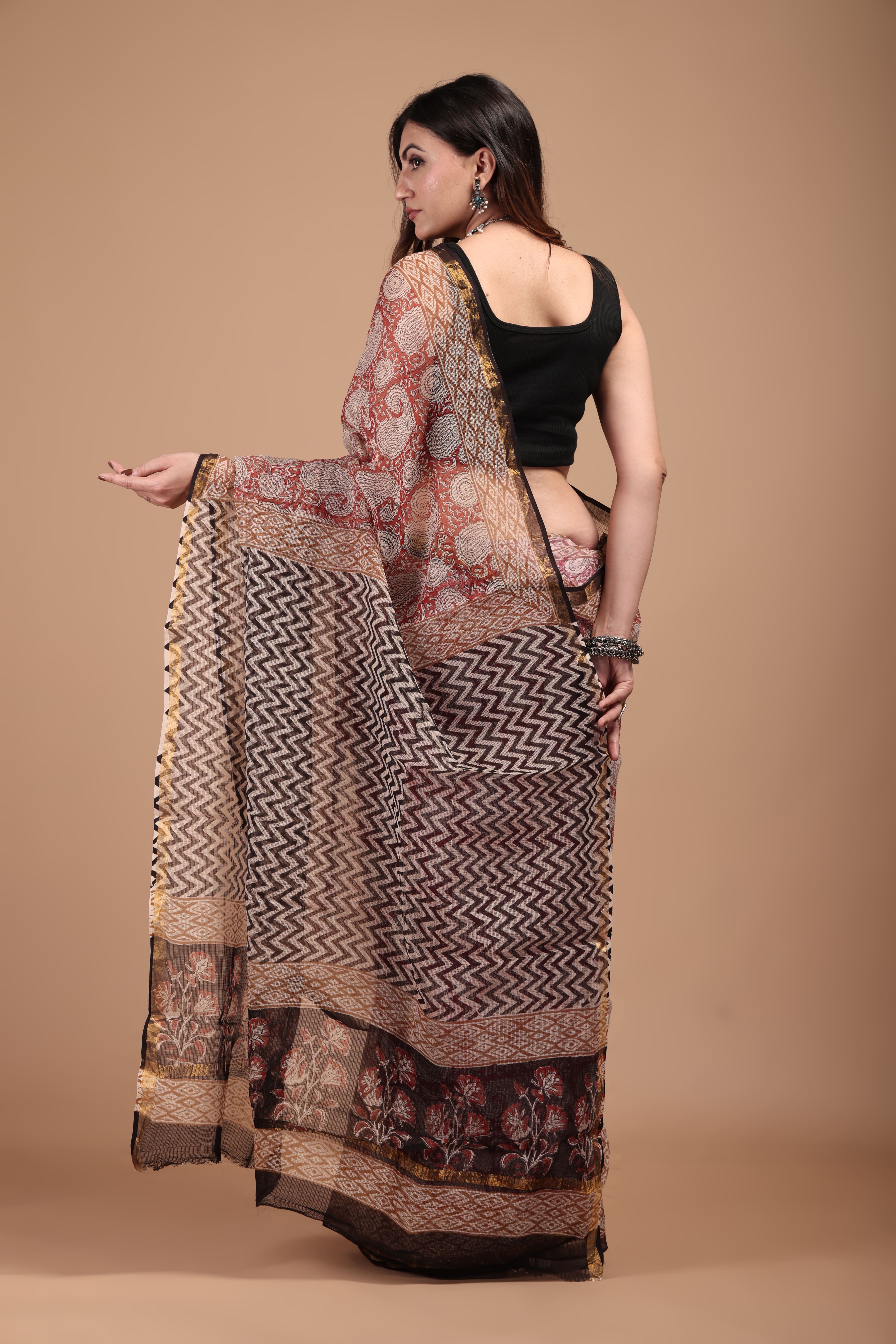 Exlcusives - natural dye vegetable hand block print ajrakh vanaspati PURE MODAL SILK SAREE IMPORTED SILK FABRIC with printed beautiful blouse Size Saree = 5.5 Mtr Blouse = 0.8-1 Mtr