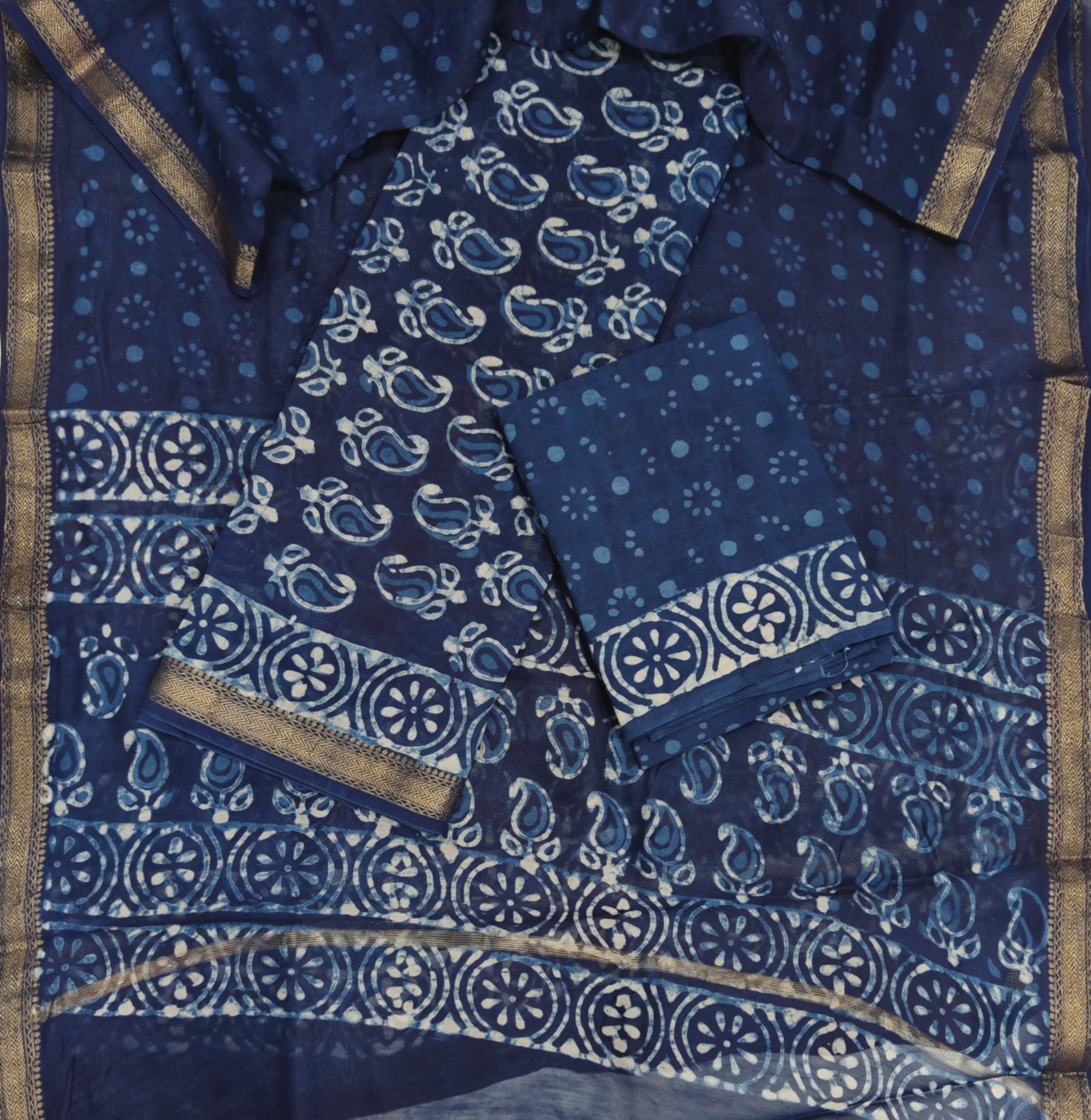 Exclusive maheshwari silk suit set with *Cotton* pajama and pure maheshwari silk dupatta Top-2.5 mtr(maheshwari) Dupatta -2.5 mtr(maheshwari) Salwar -2.5 mtr(Cotton)