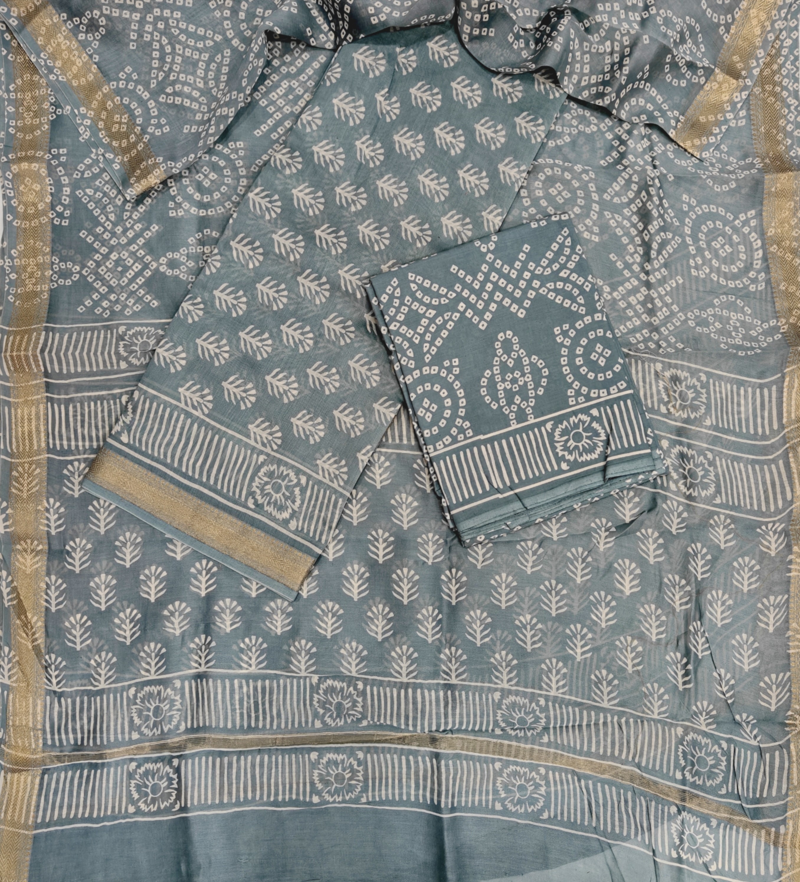 Exclusive maheshwari silk suit set with *Cotton* pajama and pure maheshwari silk dupatta Top-2.5 mtr(maheshwari) Dupatta -2.5 mtr(maheshwari) Salwar -2.5 mtr(Cotton)