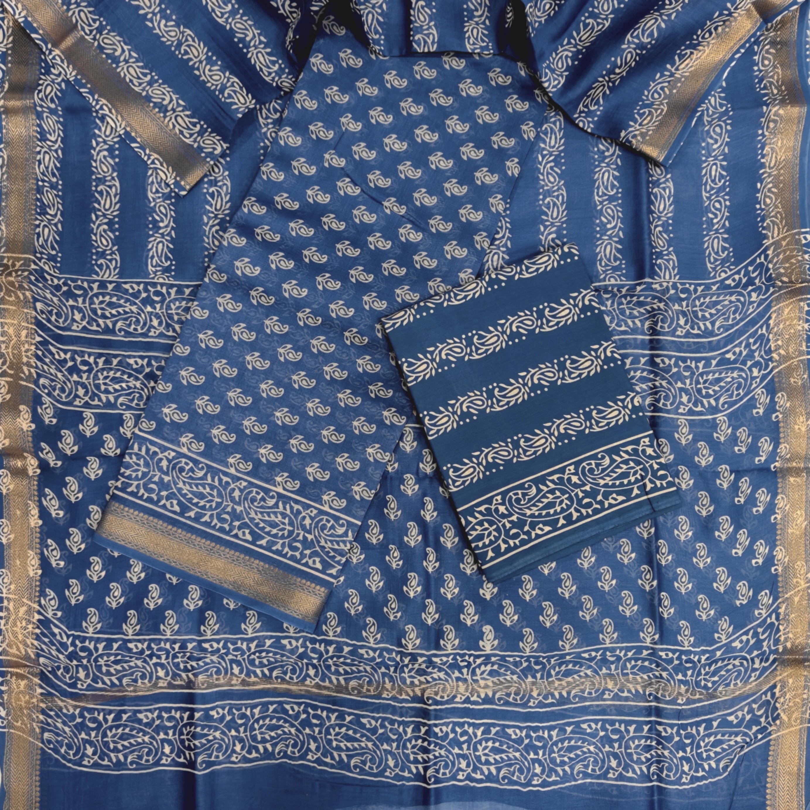 Exclusive maheshwari silk suit set with *Cotton* pajama and pure maheshwari silk dupatta Top-2.5 mtr(maheshwari) Dupatta -2.5 mtr(maheshwari) Salwar -2.5 mtr(Cotton)